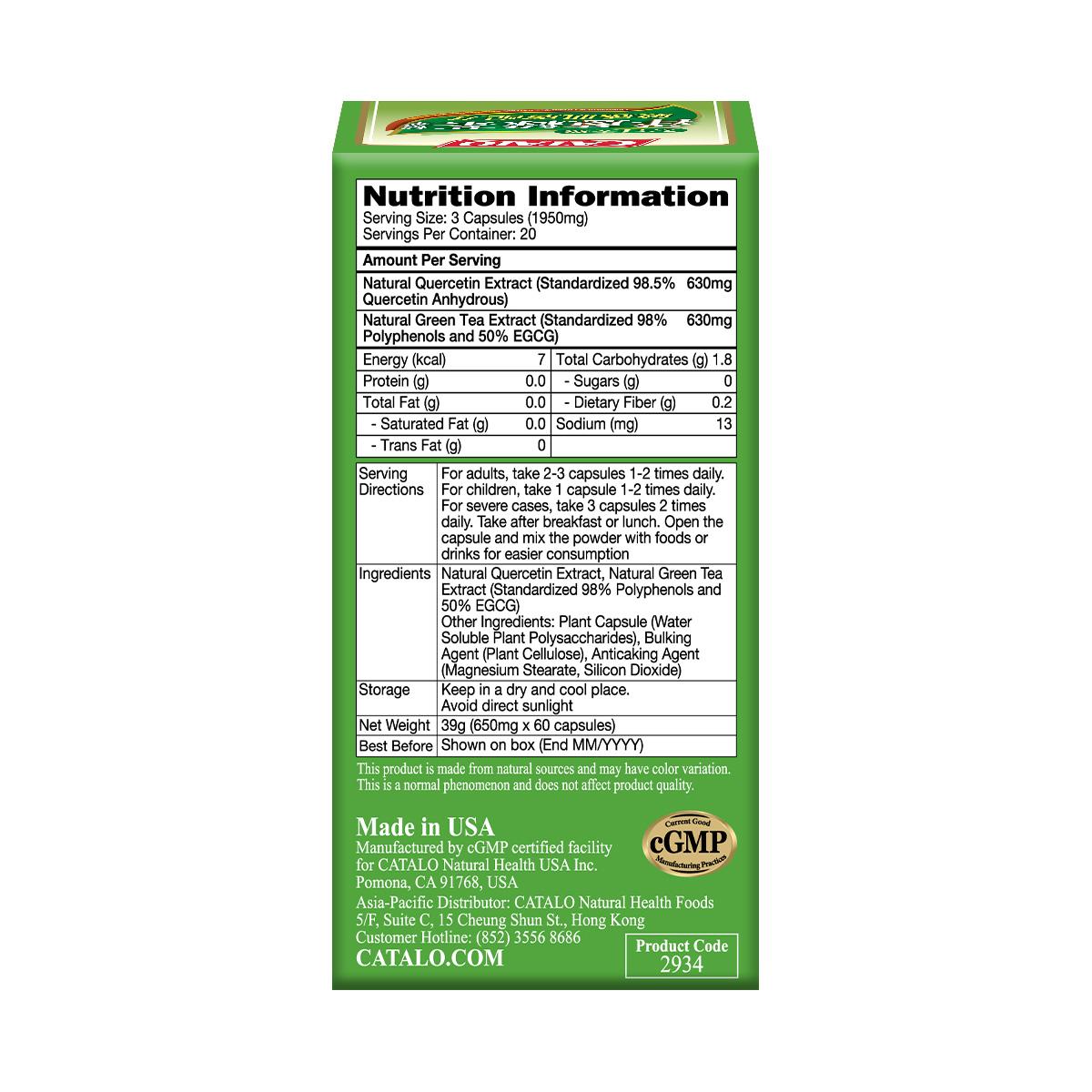天然濃縮洋蔥素(槲皮素)精華,天然綠茶精華(含標準化98%多酚及50%益多酚EGCG)