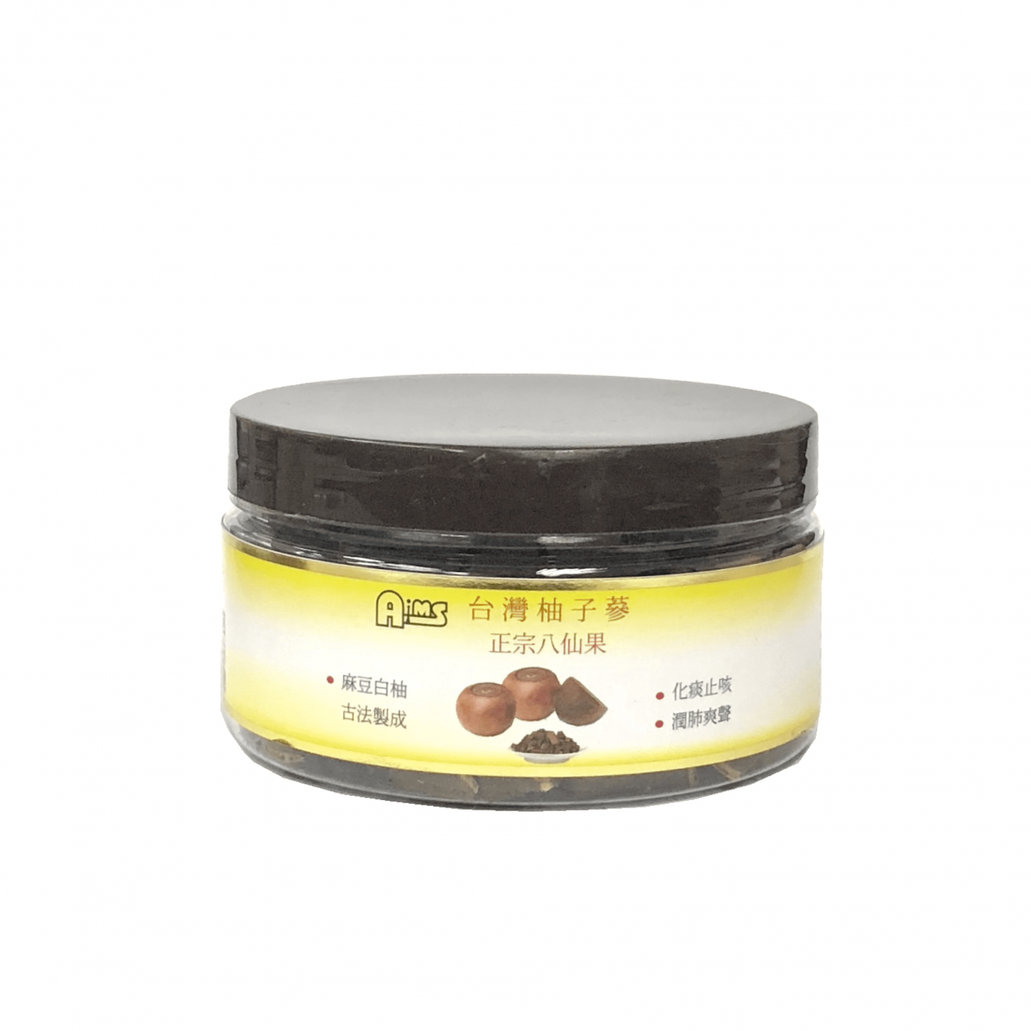 本产品传承百年手艺, 用正宗白柚子经九蒸九晒九烘精炼而成, 成份天然, 含丰富维生素A、C, 润喉生津止渴, 无添加淀粉或人工香料。 成份: 柚子, 金枣, 香橼, 紫苏, 甘草, 陈皮, 金桔, 川贝, 柠檬, 佛手