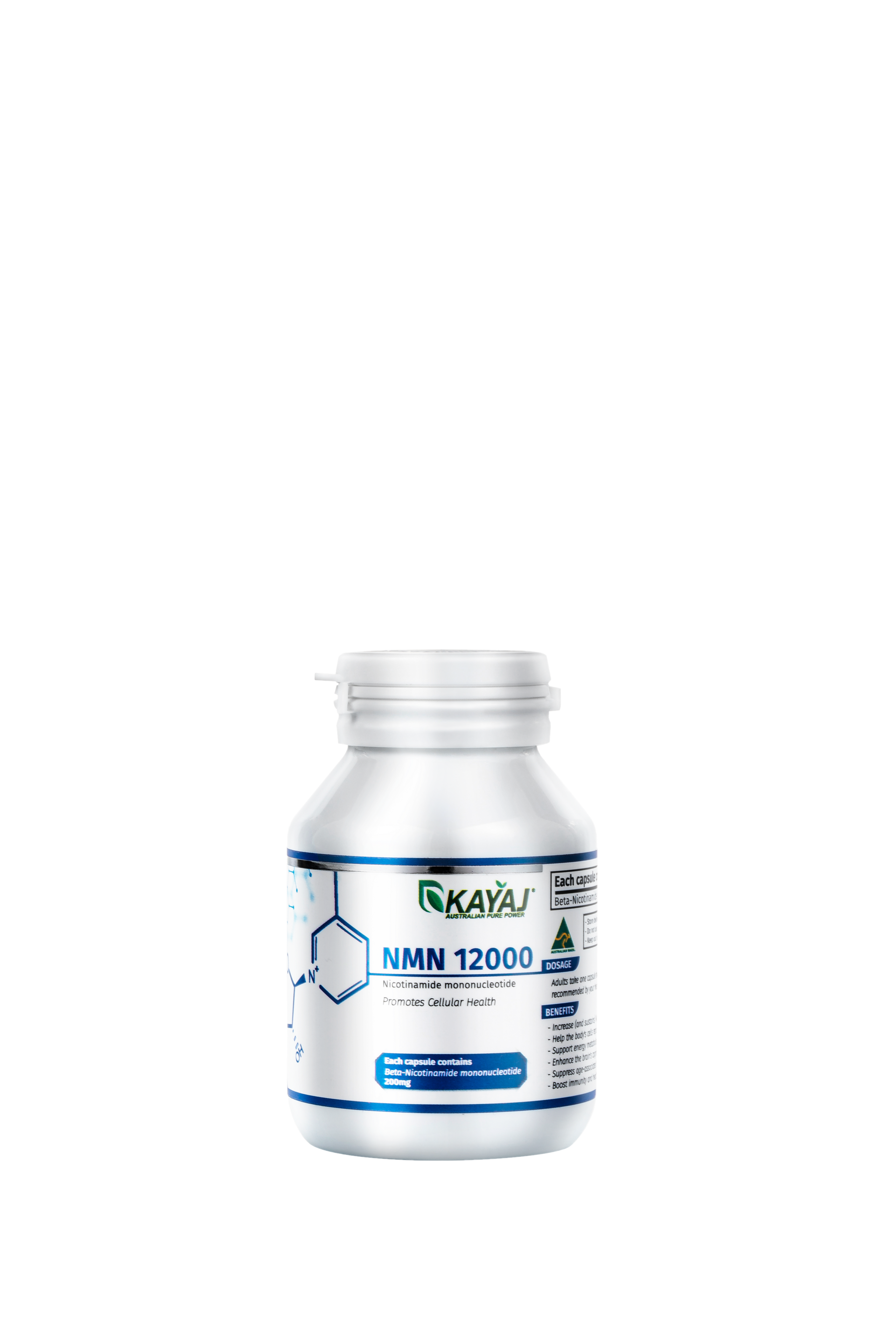 KAYAJ ®NMN 12000 是一種超高 β-菸鹼醯胺單核苷酸 (NMN) 補充劑。 它提供高水平的 NMN,有助於提高細胞中的 NAD+ 水平,這種化合物在體內能量產生、新陳代謝和細胞功能中發揮著至關重要的作用。