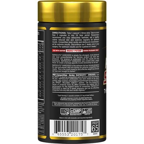 缓释热生热剂 17 种坚如磐石的成分,包括绿咖啡提取物 20:1 纯肉桂提取物 Rapidcuts® Shredded 健美脂肪燃烧器含有纯凈、纯粹的脂肪粉碎效力。减脂科学已知的最浓缩、最有研究支援的成分已经汇集在一起,为您提供了您从脂肪燃烧器补充剂中获得所需的那种快速、加速的脂肪粉碎能力。Rapidcuts 脂肪燃烧减肥药简直是我们生产过的最强大、最先进、最全面的脂肪燃烧产品。