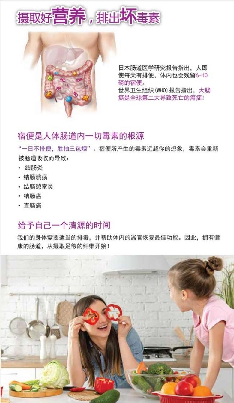 拥有7大精华的全面均衡营养素、补充 每日蔬果的摄取量、 加速肠胃蠕动 给全家人每日均衡营养所需加的一道 菜。
