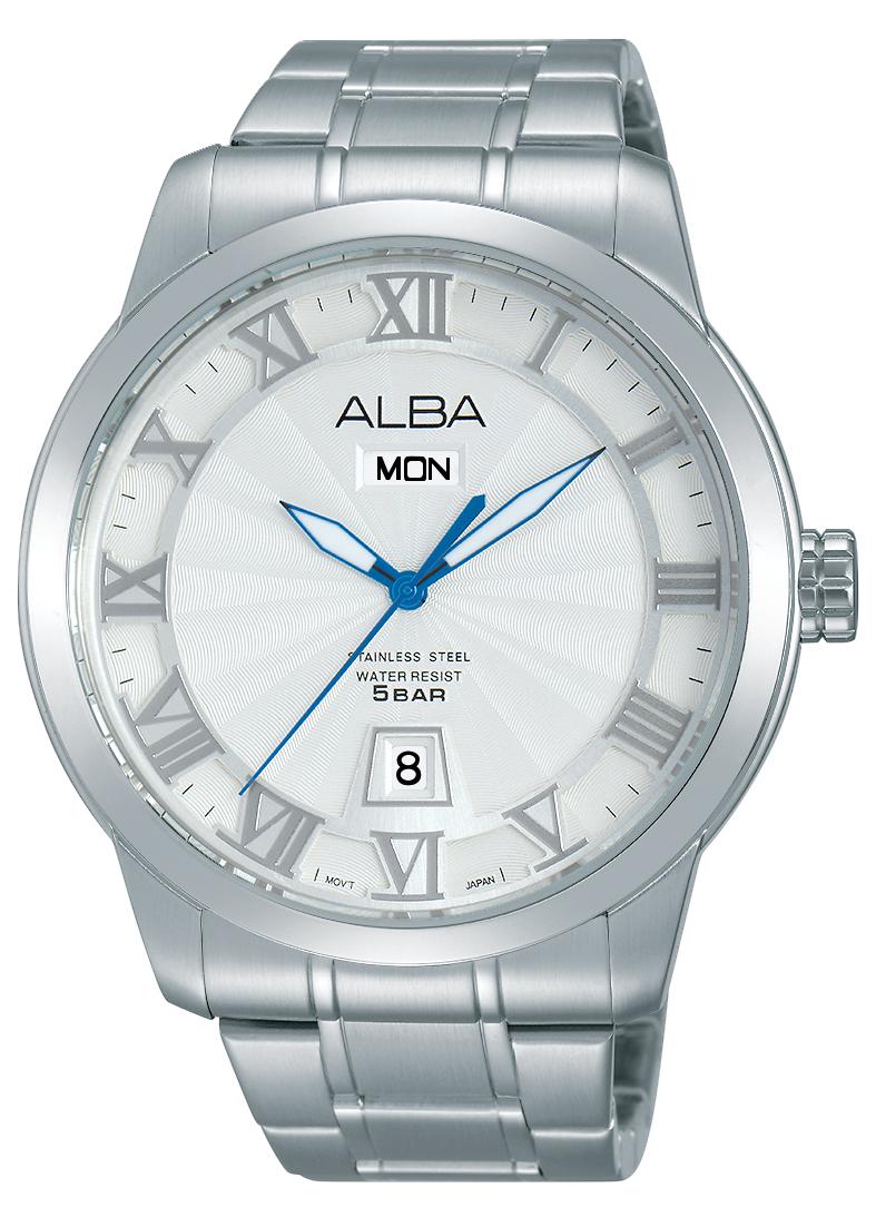白色表面不锈钢表壳和表带矿物玻璃镜面旋入式背盖星期日期显示日常生活防水(50米)表盘直径:45mm