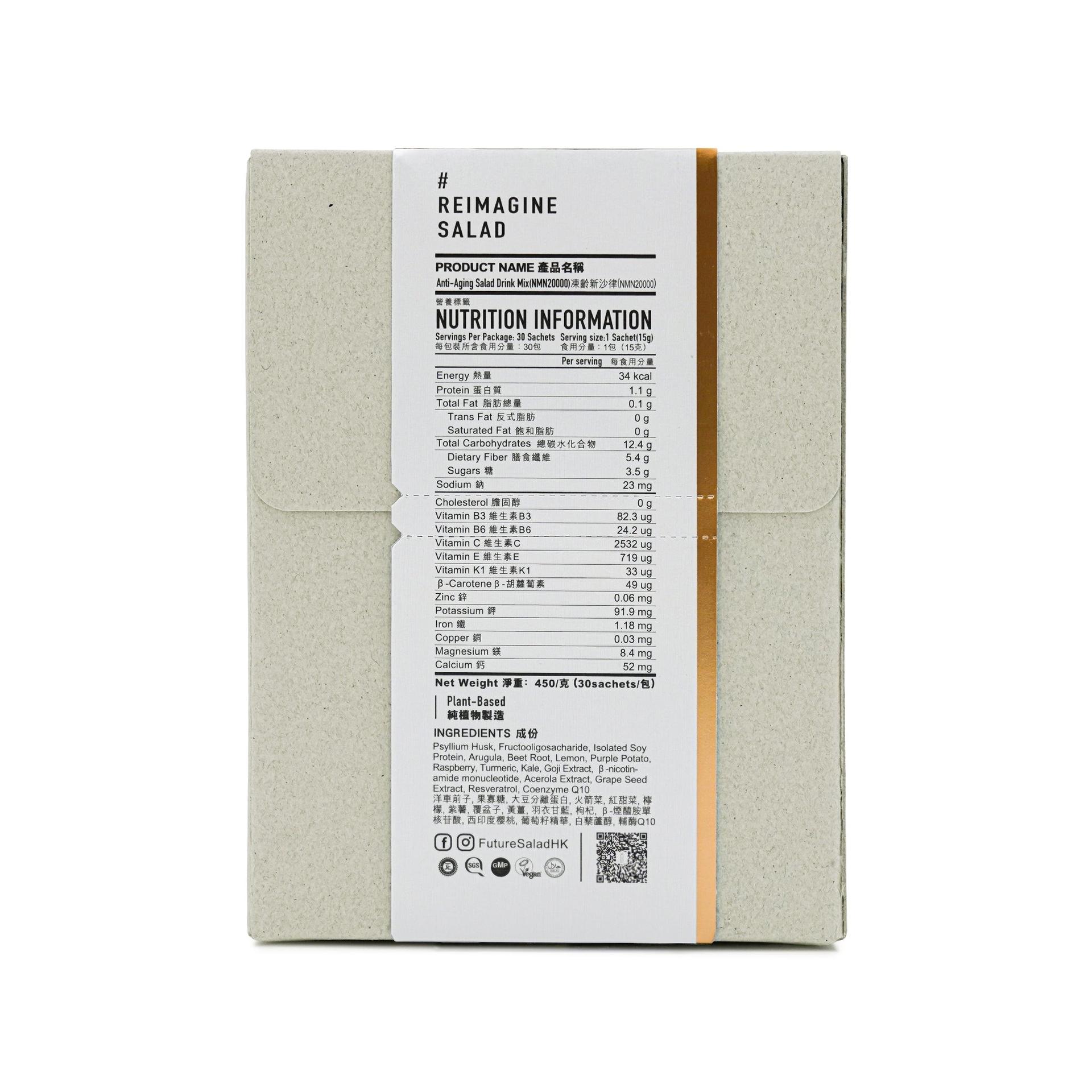 Future Salad 凍齡新沙律飲 (NMN 20000) 由香港GMP廠房製造,通過STC優質「正」印品質認證,並榮獲SGS檢測認證、Certified Vegan素食認證及Halal清真認證等多項權威認證,更入選2020香港新星品牌,於眾多同類型產品脫穎而出,絕對是信心之選。