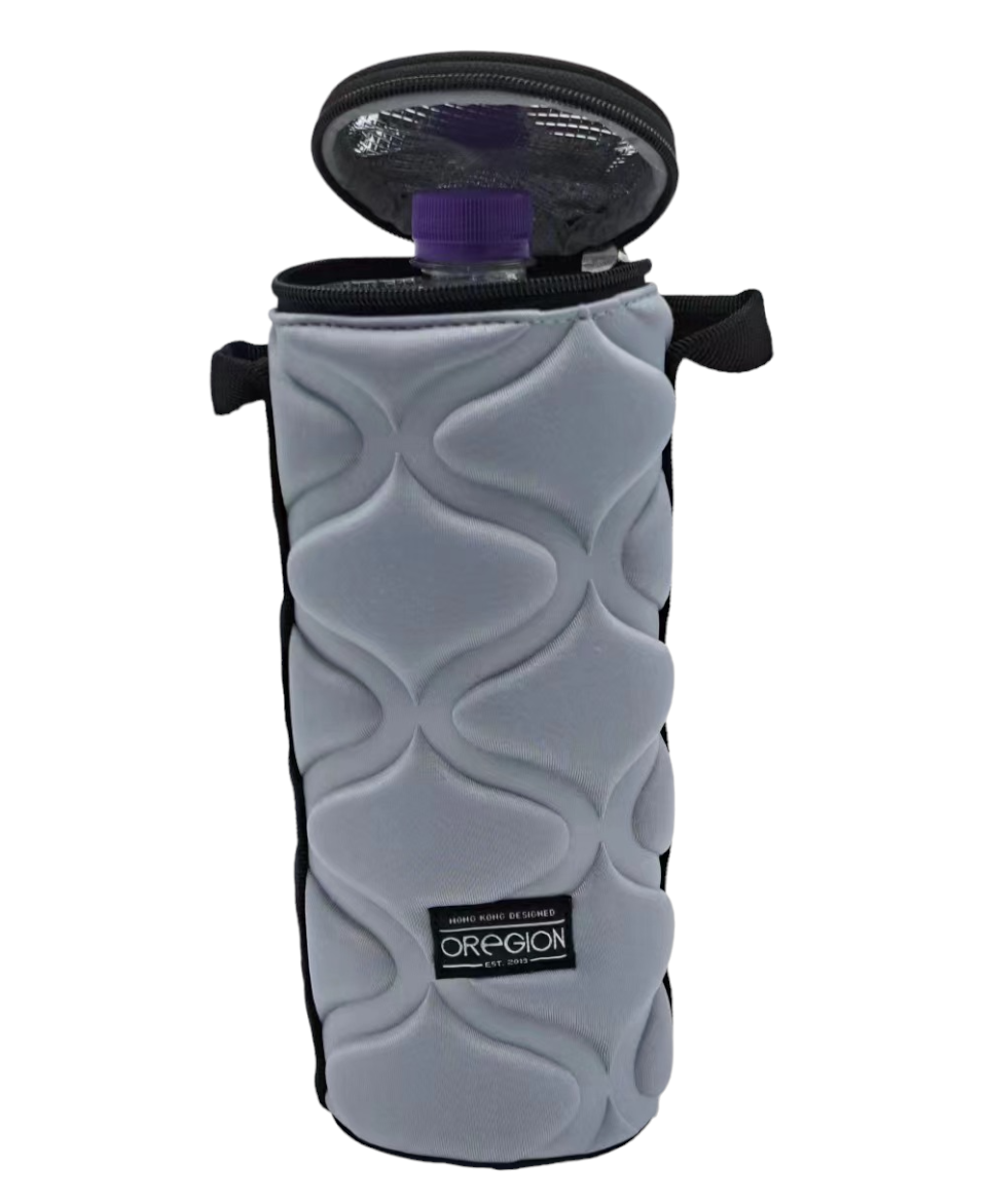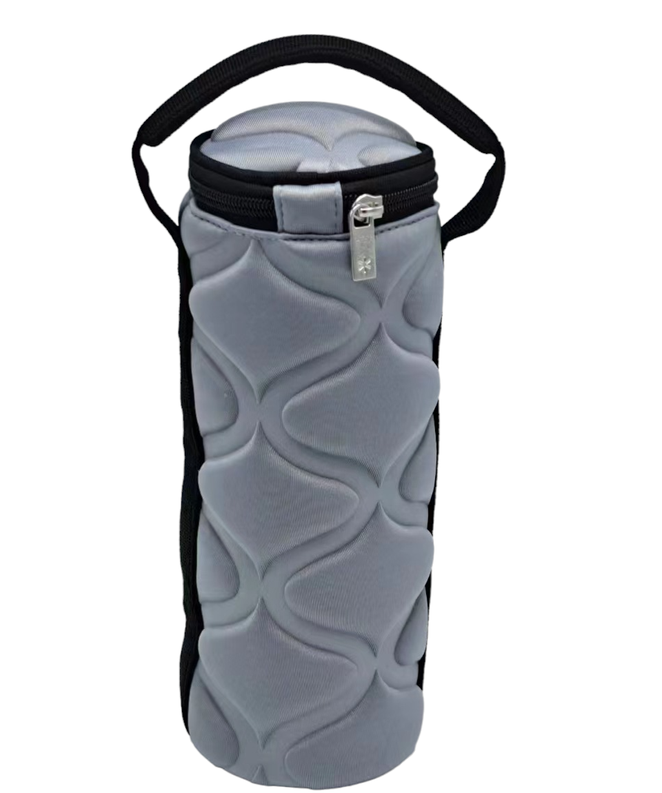 此保溫圓柱瓶袋輕巧,方便攜帶,淨色簡略黑灰風格配以具有特色的菱形壓花紋,提高時尚感。適合各年紀使用。優質耐用單向拉鏈,配以內裏特強保溫間層,已通過德國安全標準,比一般保温產品持久耐用。