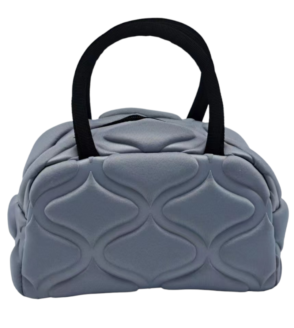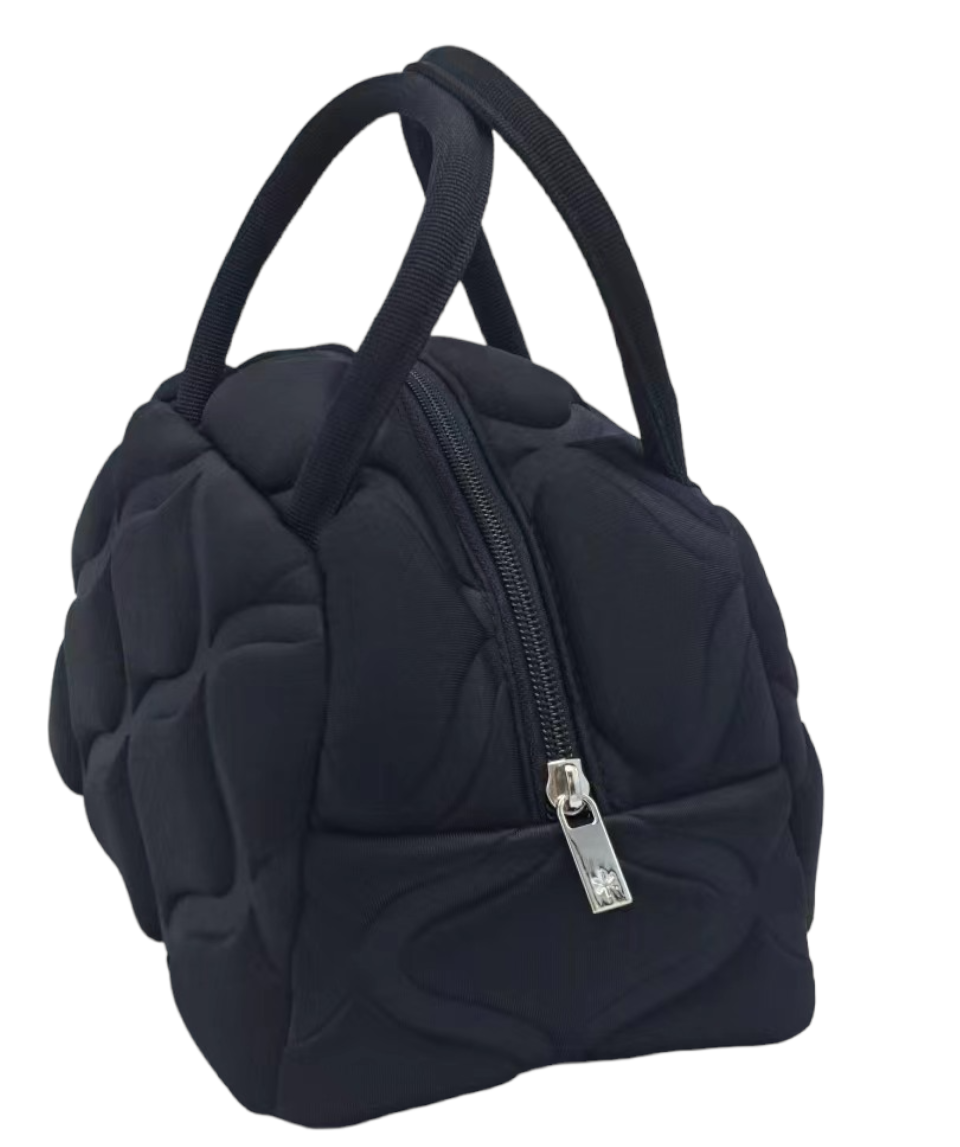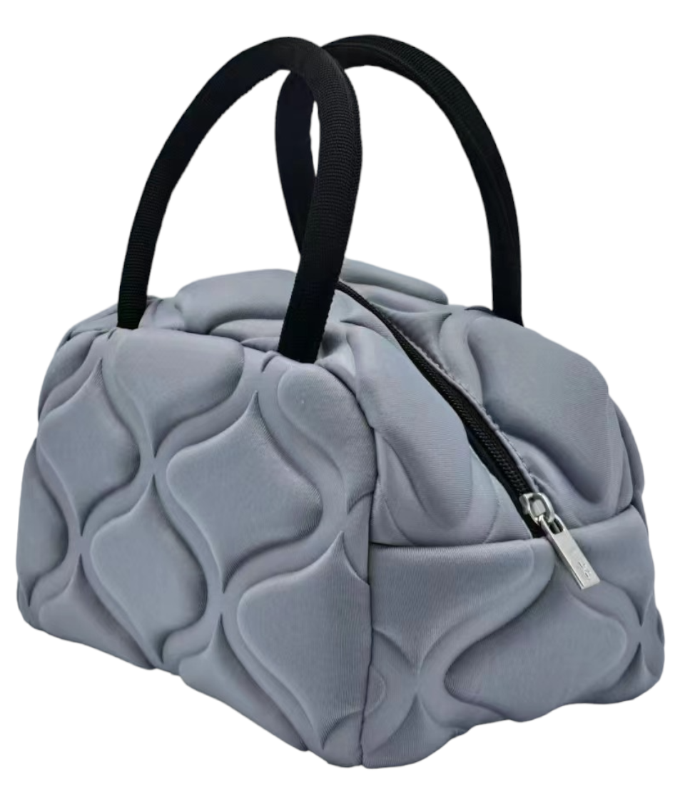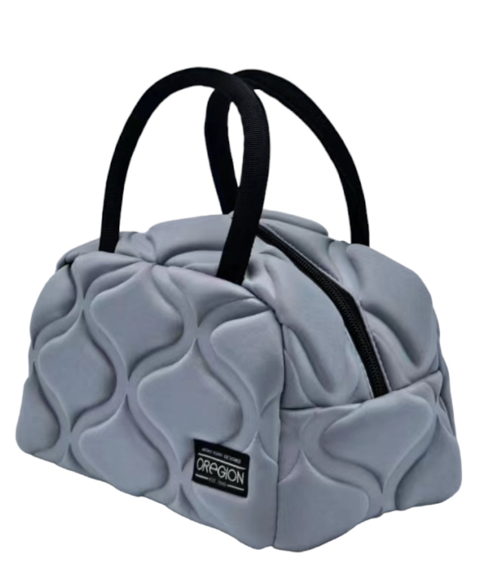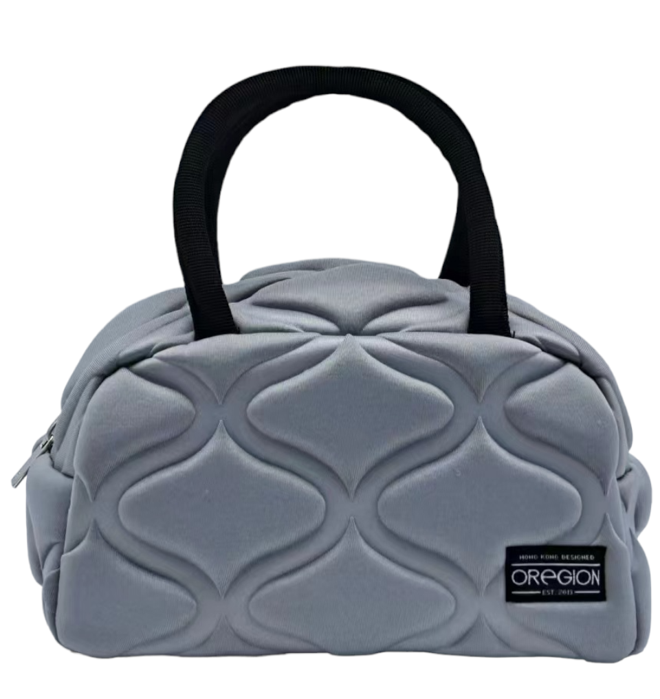 此小型保溫便當袋輕巧,方便攜帶,淨色簡略黑灰風格配以具有特色的菱形壓花紋,提高時尚感。適合各年紀使用。優質耐用單向拉鏈,配以內裏特強保溫間層,已通過德國安全標準,比一般保温產品持久耐用。