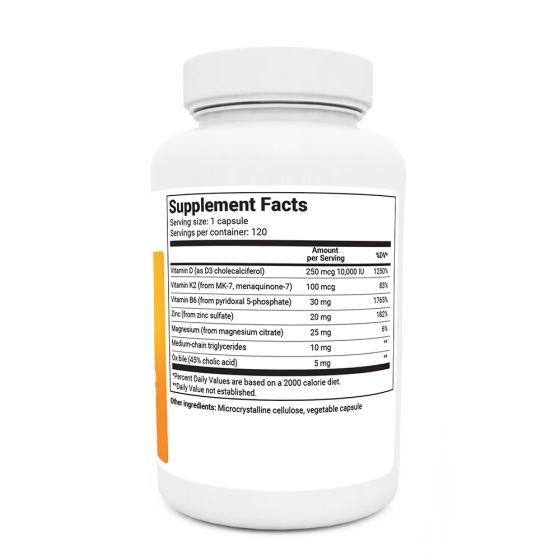 Dr. Berg D3 & K2 维生素是优质成分的强大组合,可提供每日剂量的维生素 D3 和维生素 K2。每份含有令人难以置信的 10,000 IU 维生素 D3 和 100 微克维生素 K2。 大多数维生素 D 补充剂不含维生素 K2,并且由身体无法有效吸收的低质量营养素制成。Dr. Berg D3 & K2 维生素的配方充分考虑了您的健康。我们精心设计了Dr. Berg D3 和 K2 维生素,提供必需维生素、中链甘油三酯和胆盐的完美混合物,以易于吞咽的胶囊形式提供,无论您走到哪里,都能提供方便的营养来源!