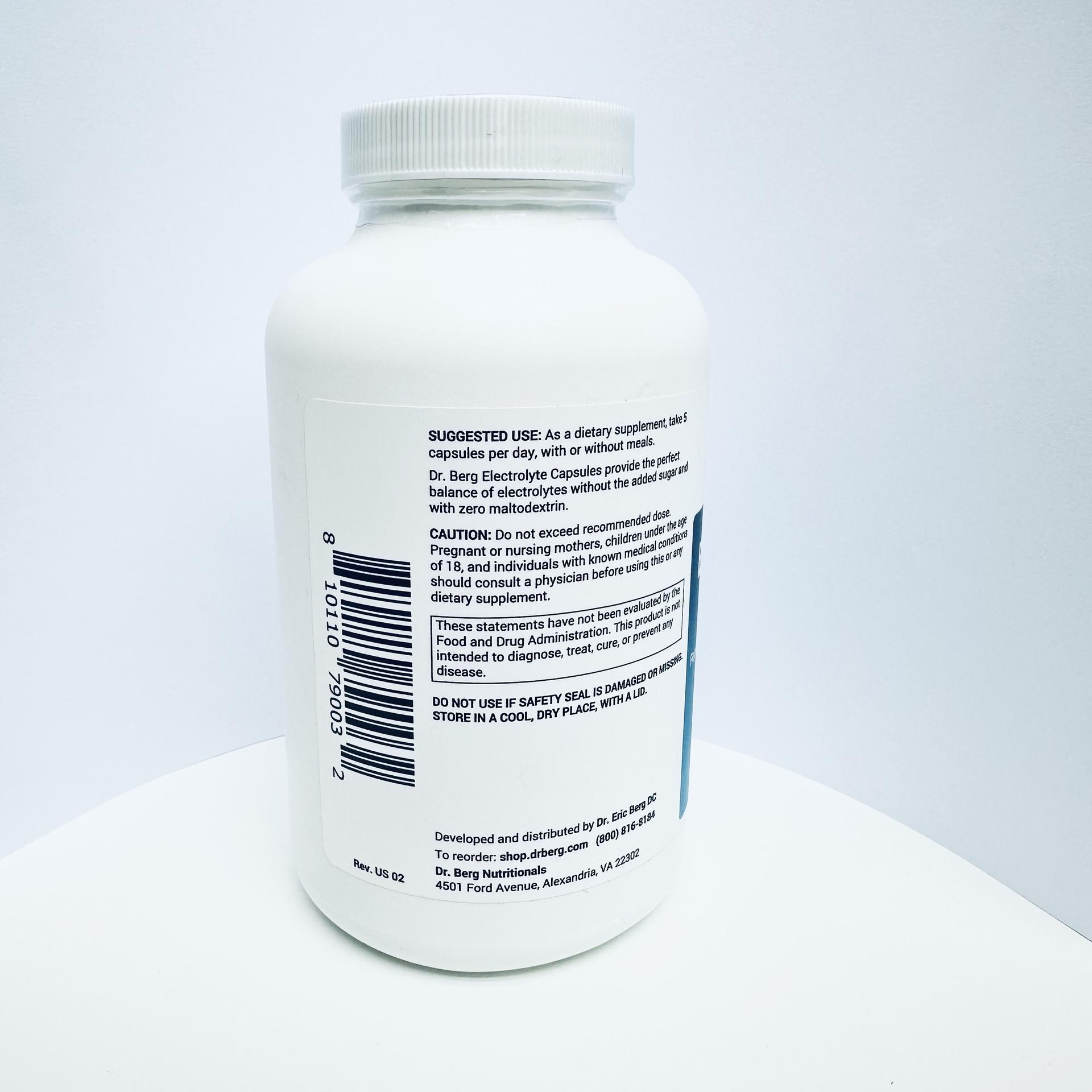 Dr. Berg 电解质胶囊 Dr. Berg 电解质胶囊为您提供优质电解质矿物质的补充。每份含有令人难以置信的 350 毫克钾。 五种重要电解质和微量矿物质复合物的电气化组合为您提供强大的日常电解质支援。每瓶提供80份强效电解质。 电解质缺乏比您想象的要容易 普通成年人每天至少需要 4700 毫克钾。从这个角度来看,你必须每天食用超过11根香蕉或7到10杯富含钾的蔬菜,以满足你的日常需求。如果你锻炼,你的日常需求可能会更高。 而这只是一种必需的电解质矿物质——你还需要镁、钠、钙、氯化物和各种微量矿物质。 由于许多人都在努力满足日常电解质需求,难怪他们会感到疲惫不堪。