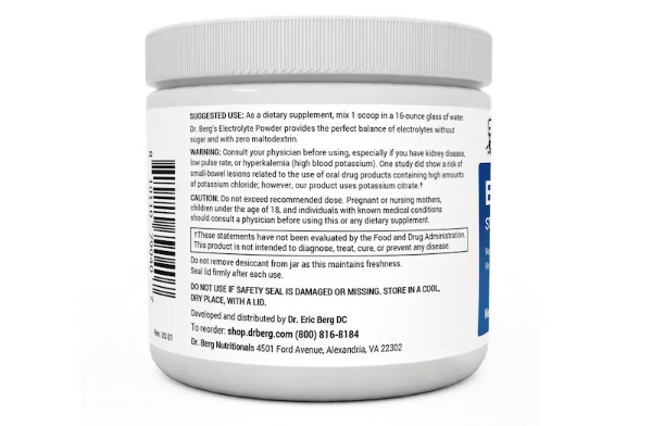 Dr. Berg 電解質粉為您提供優質電解質礦物質的補充。每份含有令人難以置信的 1000 毫克鉀。