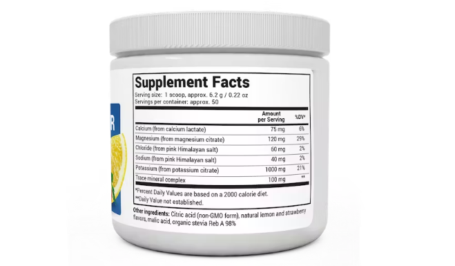 五種重要電解質和微量礦物質複合物的電氣化組合為您提供強大的日常電解質支援。它用甜葉菊加糖,並用草莓檸檬水味製成。
