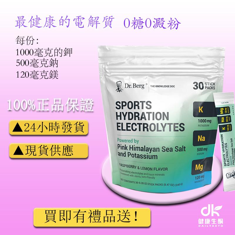 Dr. Berg 運動補水電解質 Dr. Berg 運動補水電解質為您提供優質電解質礦物質。每份含有令人難以置信的 1000 毫克鉀、500 毫克鈉和 120 毫克鎂。 五種重要電解質和微量礦物質複合物的電氣化組合為您提供強大的日常電解質支援。它用甜葉菊增甜,並用覆盆子和檸檬味製成。 每個袋子提供30個單份運動電解質棒包。只需將一包運動補水電解質與水混合,即可享用清爽美味的覆盆子和檸檬味電解質飲料。