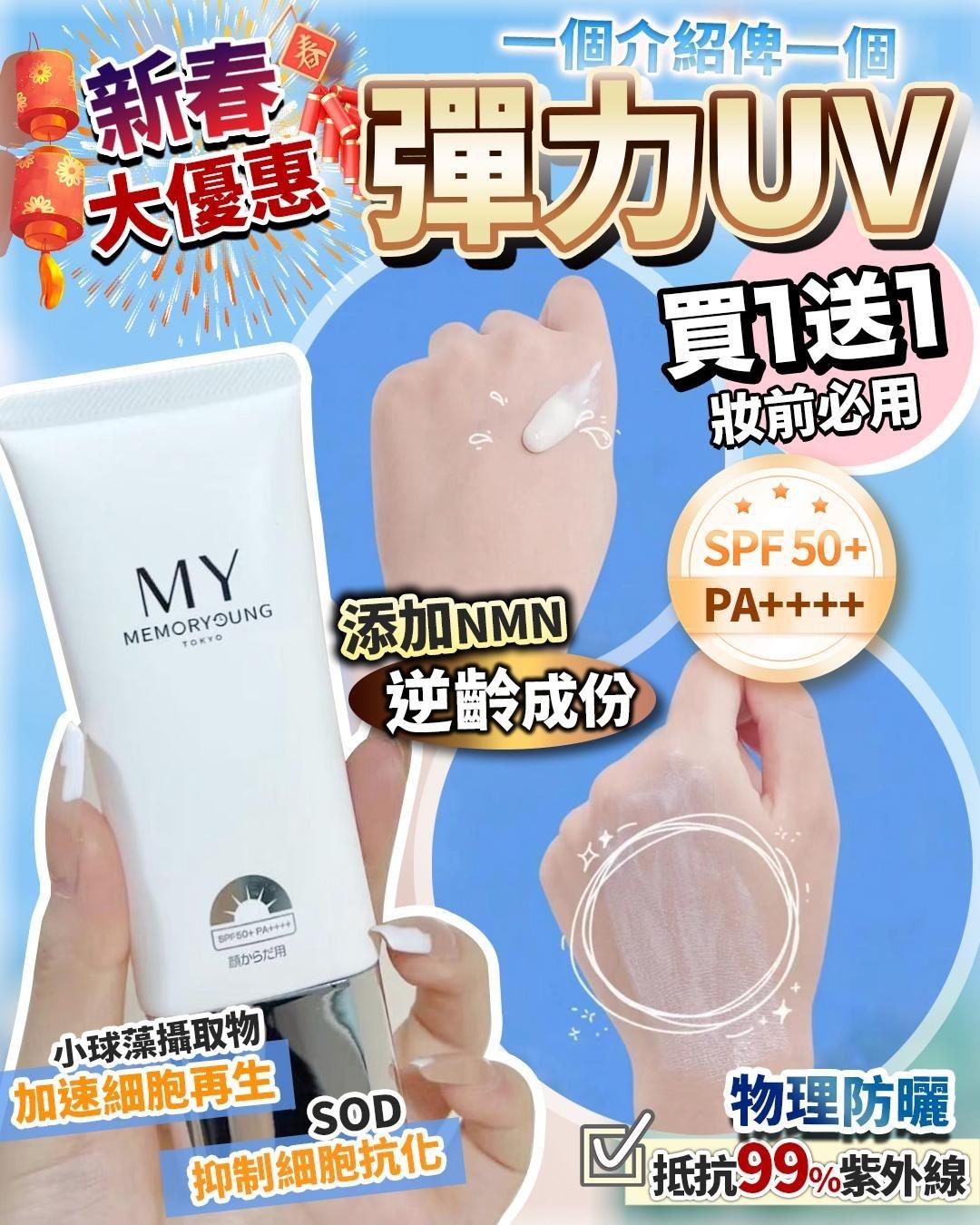 最新研發 MY 防曬 終於出世啦 一路都買斷貨 舊版用家讚口不絕 升級喇 今次成份加強再升級 ‼️ 彈力UV ‼️ SPF 50+ PA++++ 生物+物理+化學三合一 減少皺紋 52% 減少色斑 13% 提升彈性 60% 提升水份 42% 加速修復 26%
