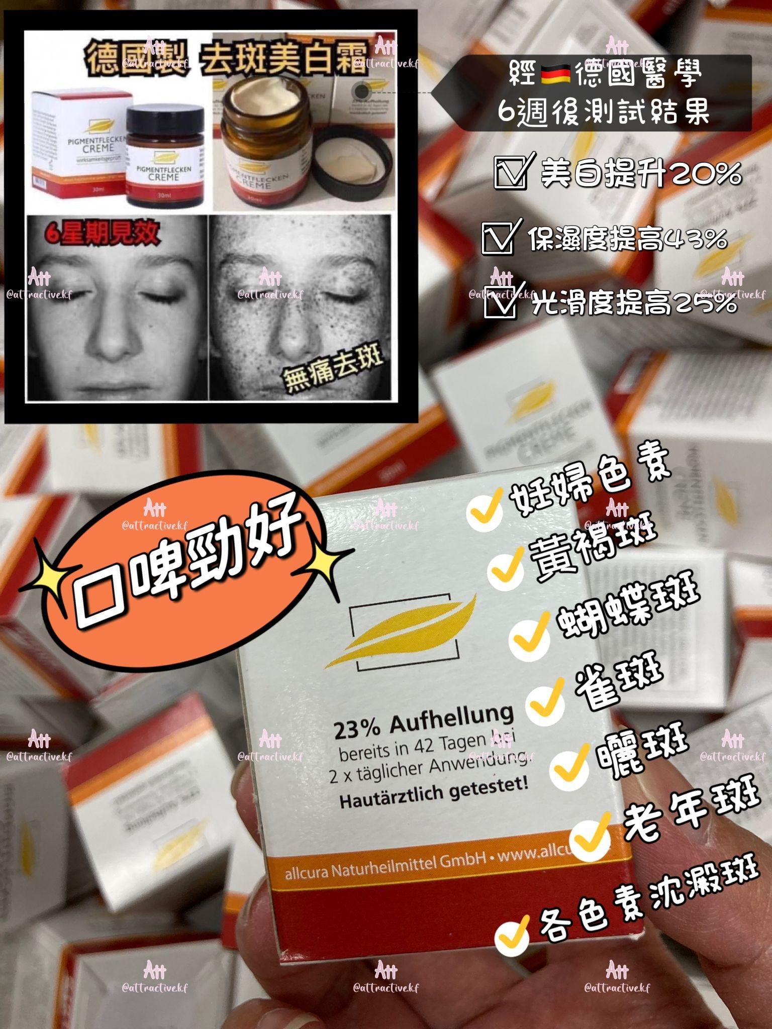 德國??當地回購律極高!客大讚好正,好好用! ?美白程度提升20% ?皮膚保濕度提高43% ?皮膚光滑度提高25% 無痛都可以去斑嫁!德國嚴苛醫學測試,6星期測試結果,通過植物提取物減少曬斑,老年斑等⋯色素斑點!保護皮膚!免受有害自由基傷害!防止皮膚老化!含純植物椰子油,Nelli-果提取物,蜂蠟,jojaba油等⋯不含化學成份! ▶️曬斑▶️雀斑▶️黃褐斑 ▶️妊娠色素▶️蝴蝶斑▶️老年斑 ▶️色素沉澱斑