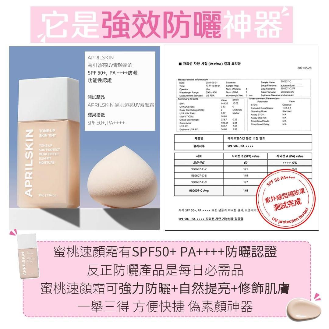 自然提亮,防曬,無粉底,補妝等 一支即可的 裸肌透亮UV素顏霜 + 防曬&妝前&粉底 3合1 + 自然提亮好氣色 + 不泛白 + 簡單快速塗抹 ✔SPF50+ / PA+++的高防曬度數 ✔ 肌膚像打燈光般光彩照人的的膚色提亮 ✔桃的顏色,像我的肌膚一樣自然的顏色 ✔ 通過口罩沾染測試