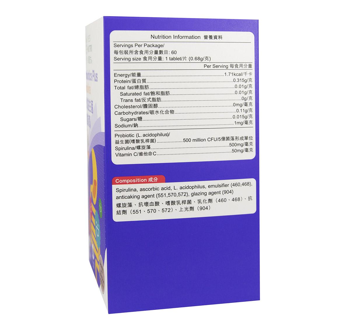卓營方天然益生菌+螺旋藻擁有兩種天然的微生物,有助維持腸道和消化功能的健康。大部份繁忙的都市人都可能有腸道的問題,本產品能改善您的腸道健康。益生菌能平衡腸道內各類正常菌群,促進腸胃健康、抑制有害細菌的在腸道生長和紓緩過敏反應及乳糖不耐症狀,並能幫助消化。螺旋藻可以保持腸道暢順和增強營養在腸道吸收。更重要的是螺旋藻有排毒作用,減輕藥物和重金屬對腎臟的毒害。