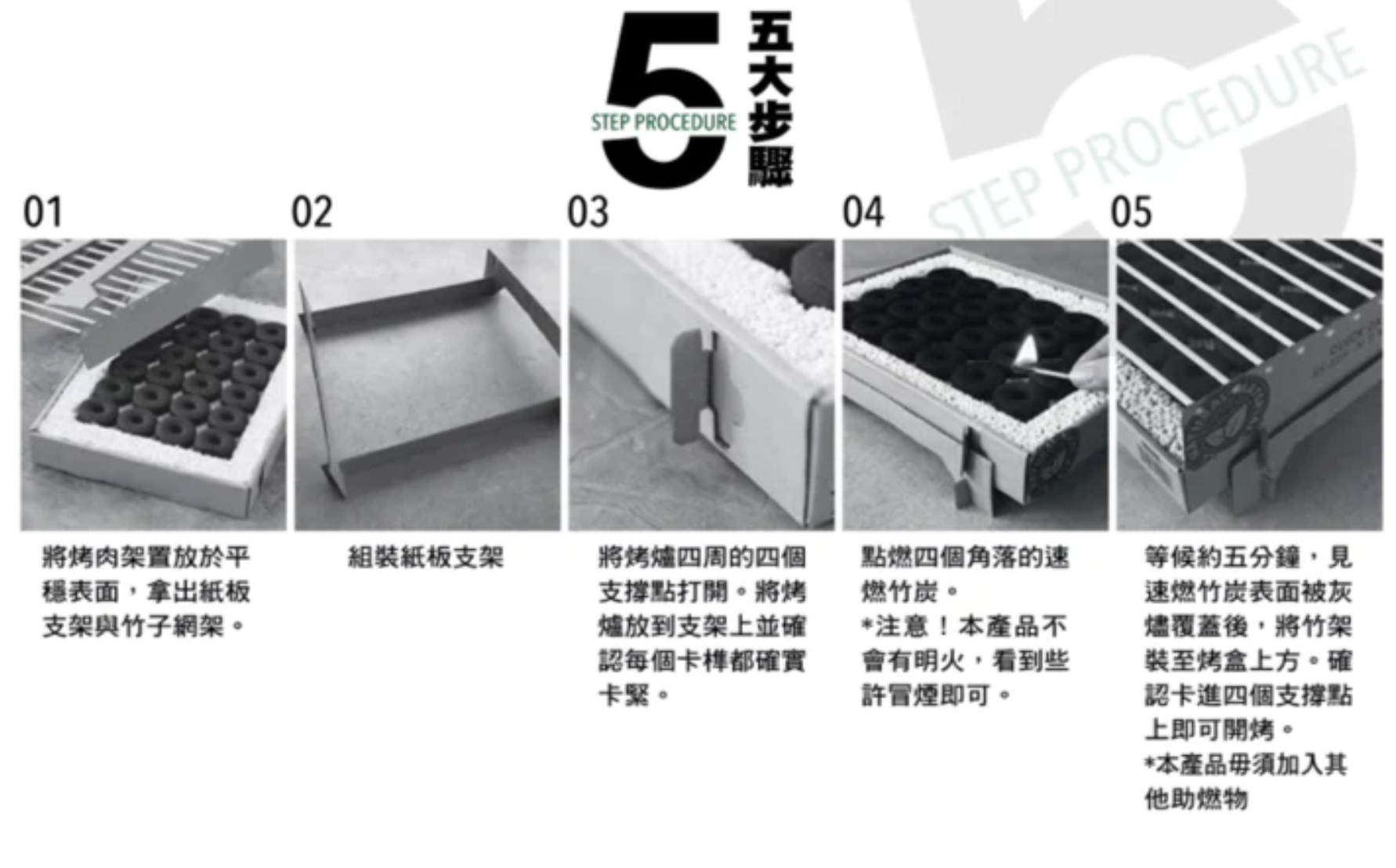 - 生火到開烤只要5分鐘