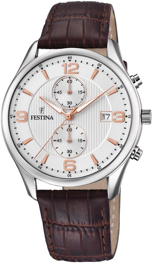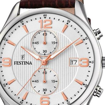 Festina 法斯蒂納 是自1902年以來的國際著名鐘錶品牌,其精緻的時尚設計, 從休閒到精巧設計到運動不同場合,手錶外觀雅緻; 石英手錶; 日本Miyota 機芯; 316L不銹鋼錶殼 ; 玻璃鏡面; 錶殼直徑:42 毫米; 5 ATM : 2年國際保修
