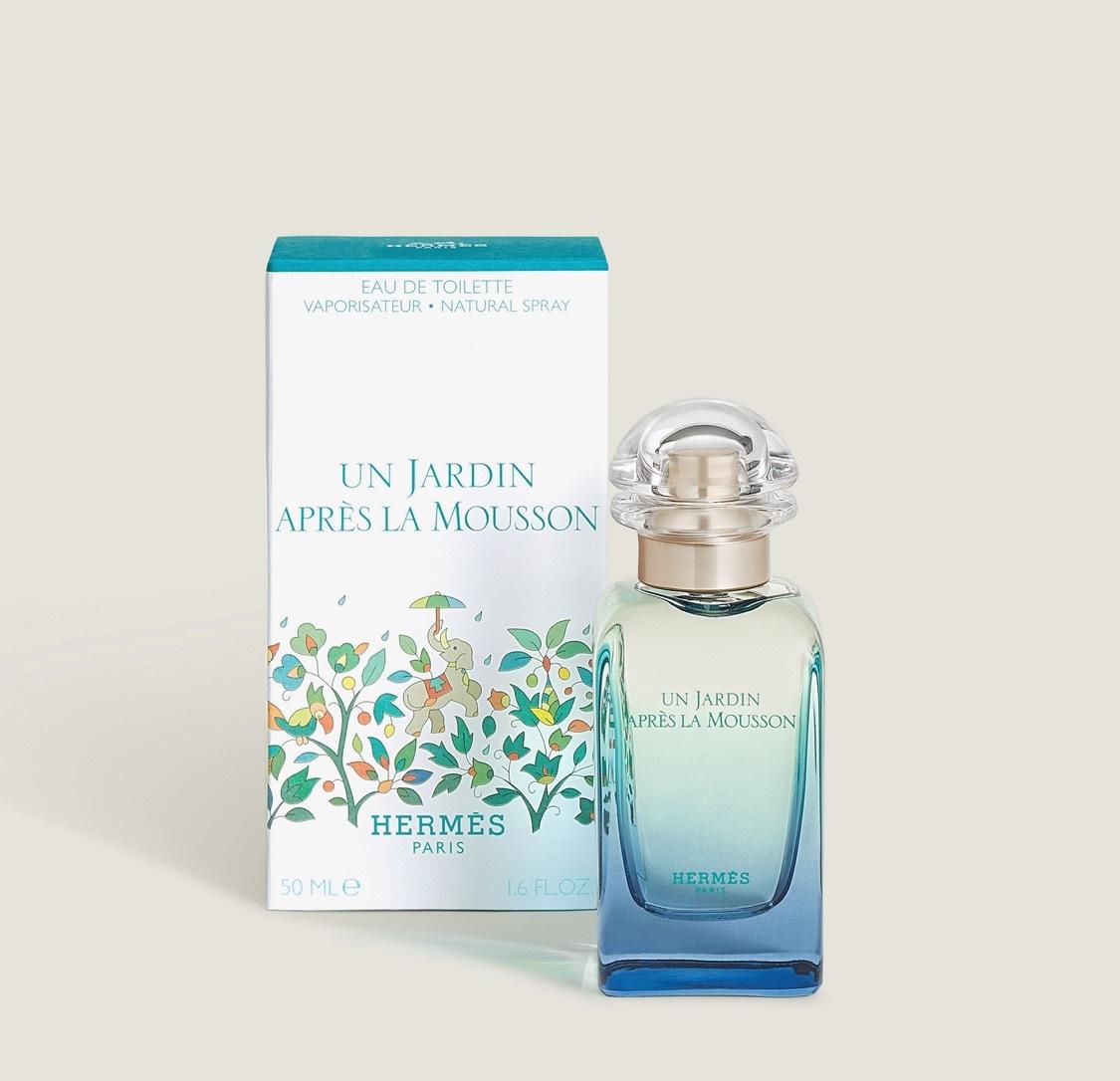 繼地中海及尼羅河花園之後,專屬調香師艾雷納Jean-Claude Ellena來到印度擷取靈感,傳達一種面對大自然甦醒時的無限感動,在大雨洗滌之後天地煥然一新,一切都變得清澈、明朗、寧靜細膩的植物清香,主角是深具代表性的印度薑花,其優美的白色花朵宛如翩翩飛舞的白蝴蝶,散發著似水的柔香,小荳蔻、芫荽、楜椒等的自然芬芳完美陪襯印度薑花,點綴著略帶木香的香根草
