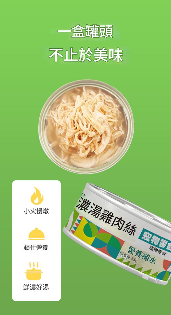 85公克*6罐; 濃湯雞絲罐 85公克*6罐; 雞絲南瓜罐