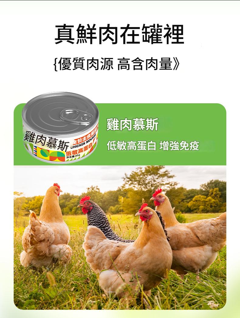 85克*6罐; 雞肉慕斯 85克*6罐; 肉蛋奶羹