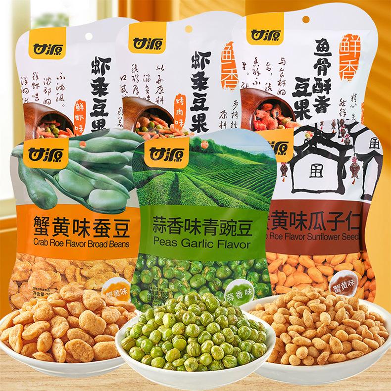 【1袋】多味花生75g 【1袋】蟹黃瓜子仁75g 【1袋】原烤花生75g 【1袋】蟹黃味蠶豆75g 【1袋】蒜香青豆75g 【1袋】鮮蝦味蝦條豆果75g 【1袋】牛排味蘭花豆75g