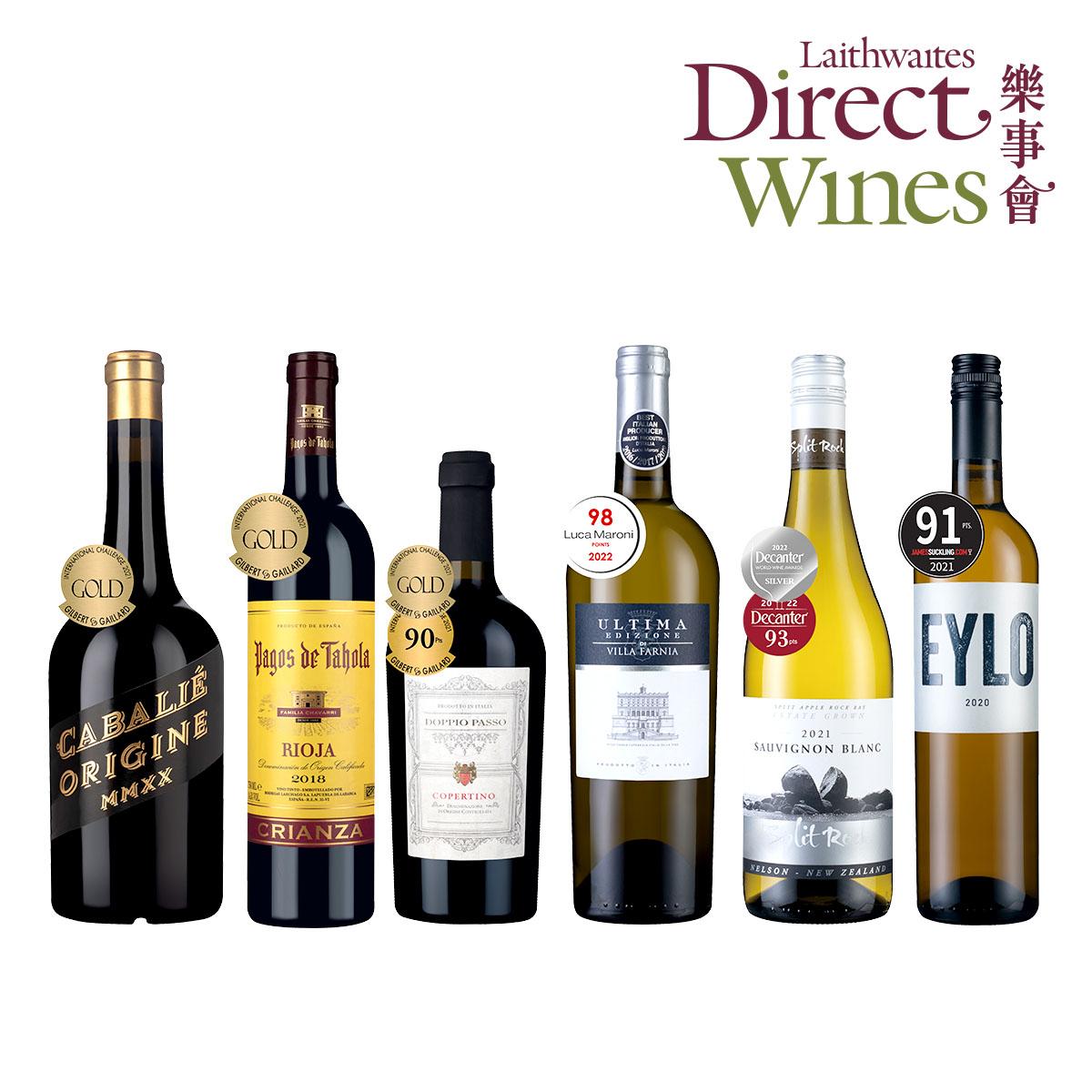 - 樂事會帶來嚴選自全球6支絢爛動人的佳釀,每支酒都大有來頭,有大獎加持的,也有高分肯定的(或者兩者皆有),絕對讓您大飽口福! - 本套裝中令人垂涎三尺的白酒,包括贏得98高分的意大利白酒、紐西蘭Sauvignon Blanc白酒,以及西班牙Verdejo醇釀 - 紅酒方面則有一款榮獲90分的意大利Copertino珍藏、里奧哈之星,還有我們樂事會的皇牌Cabalié Origine,讓您享受法式熱情陽光孕育的老藤精釀 - 如此絕讚的組合,今天就能讓您一次過擁有!喜歡的話必須把握機會立即入手! 1支Ultima Edizione Bianco NV, Vino Bianco意大利 1支Eylo 2020, Rueda DO西班牙 1支Split Rock Sauvignon Blanc 2021, Nelson紐西蘭 1支Cabalié Origine 2020, Pays d'Oc IGP法國 1支Pagos de Tahola Crianza 2018, Rioja DOCa西班牙 1支Doppio Passo Copertino Riserva 2017, Copertino DOC意大利
