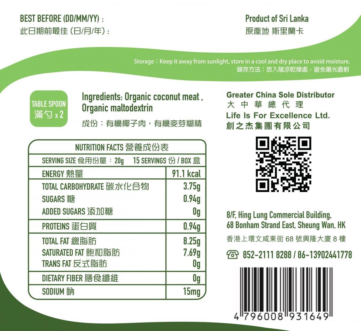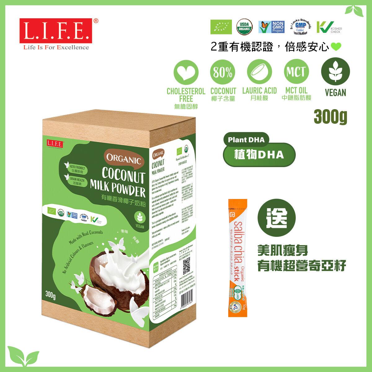 LIFE的有機香滑椰子奶粉來自斯里蘭卡帝王椰子樹,將有機的成熟椰果肉脫水後研製磨成粉末。有機香滑椰子奶粉擁有獨特豐盈的椰子香味,可簡易地以水調和,得到無需添加白糖的美味營養飲品。