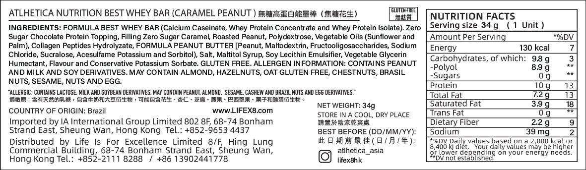 [2件優惠裝] Atlhetica無糖高蛋白能量棒(焦糖花生)1盒12條
