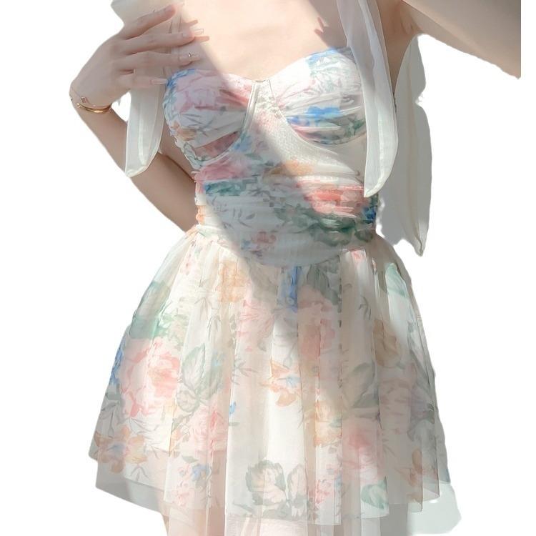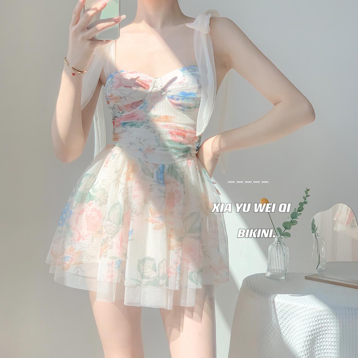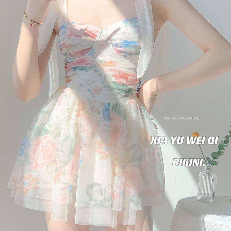 花朵裙式連體泳衣