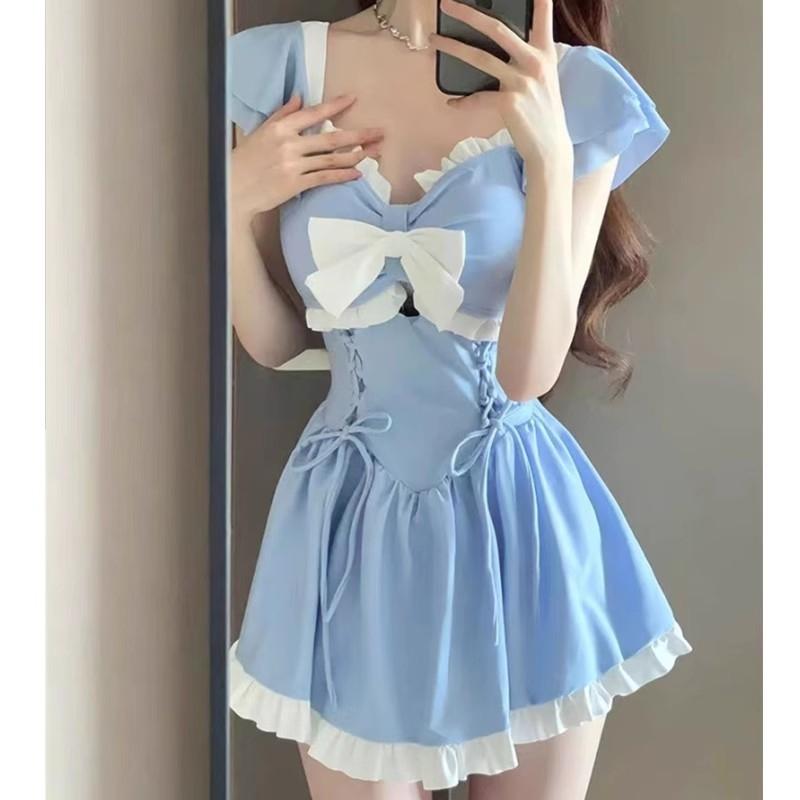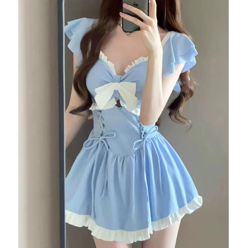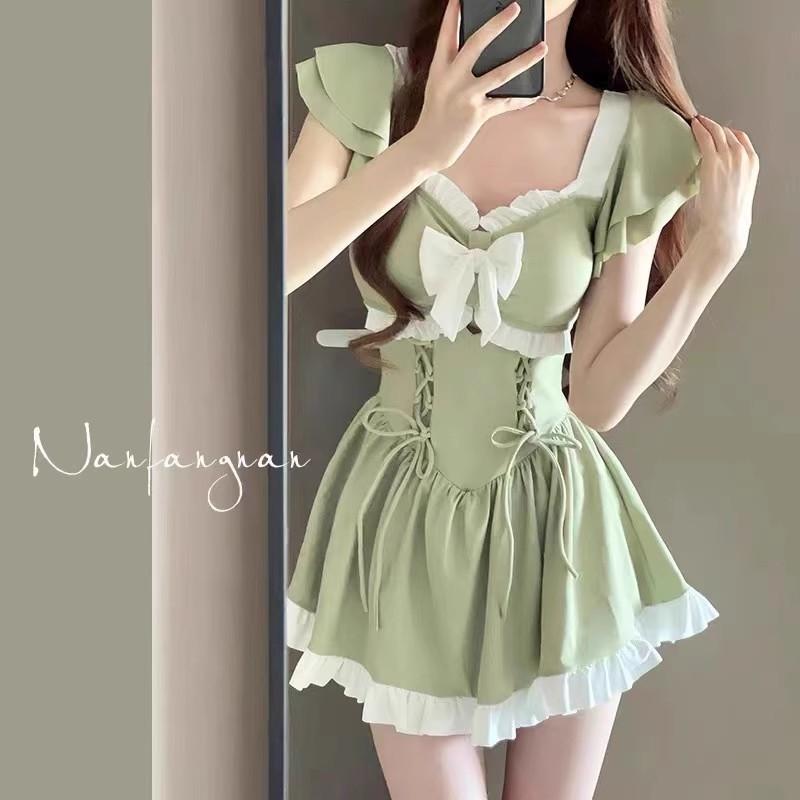 牛油果裙式連體泳衣