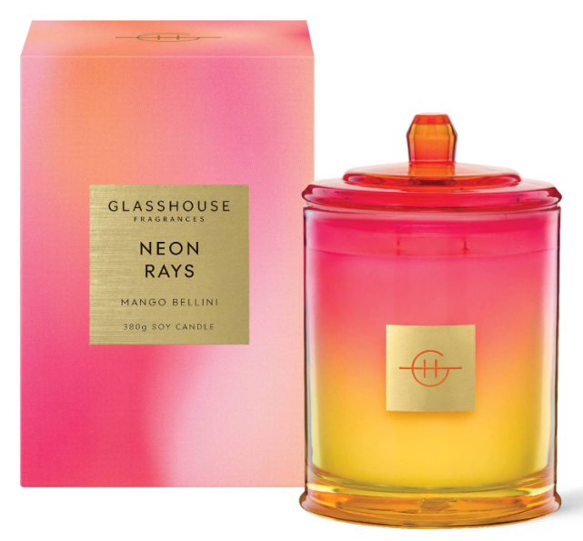 將明亮的海灘氛圍帶入您的家中,Neon Rays以芒果貝利尼為靈感的大豆蠟燭,由一系列充滿活力的香味組成。