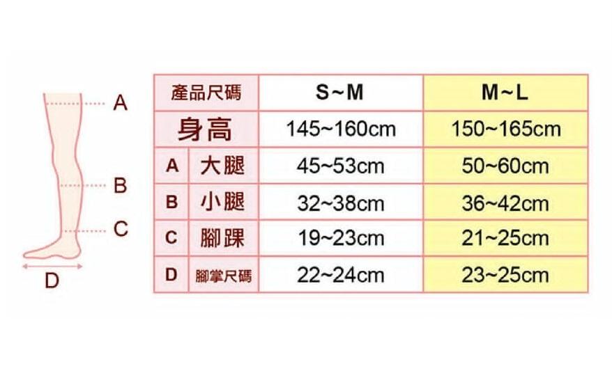 腳踝:最大 24 (18-24)hPa / 小腿:最大 18  (12-18)hPa / 大腿:最大 12  (6-12)hPa