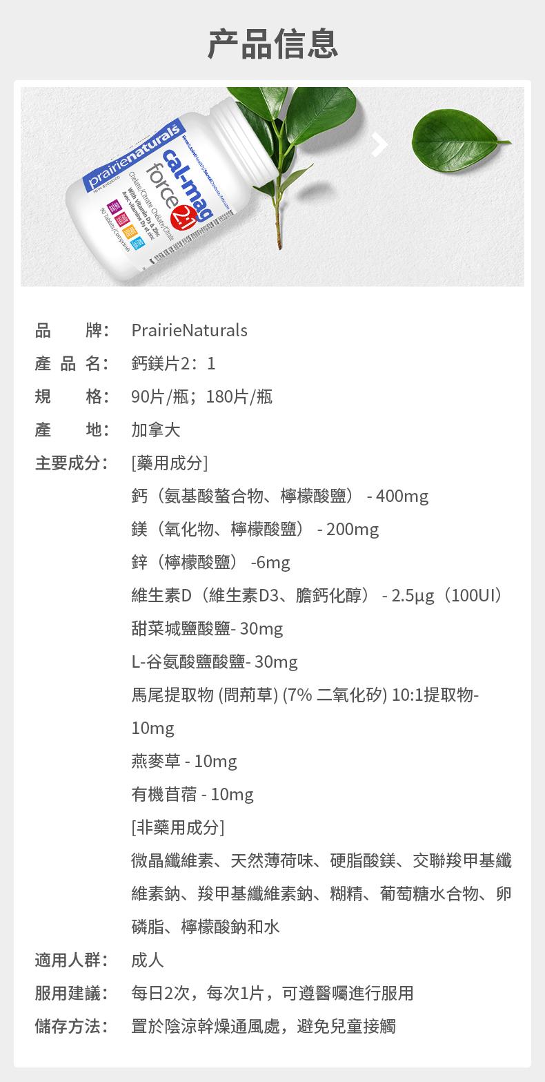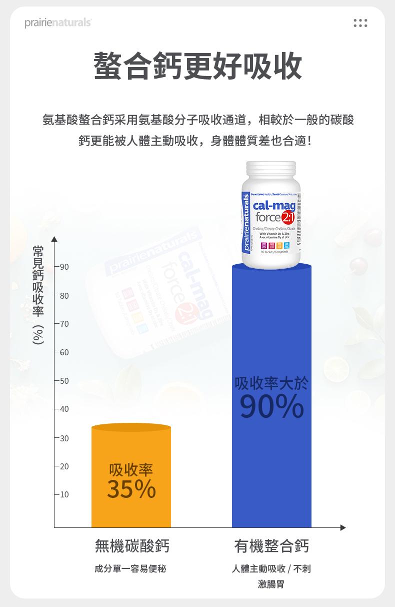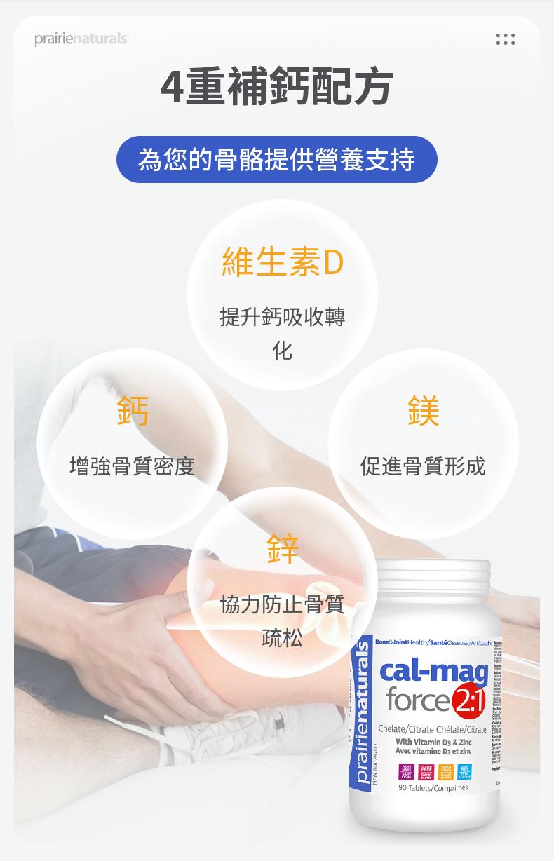 高吸收性氨基酸螯合物和檸檬酸鹽 2:1 的鈣鎂比例,支持骨骼營養和預防骨質疏鬆 幫助代謝碳水化合物、脂肪和蛋白質 有助放鬆和調節肌肉神經,維持適當的肌肉功能