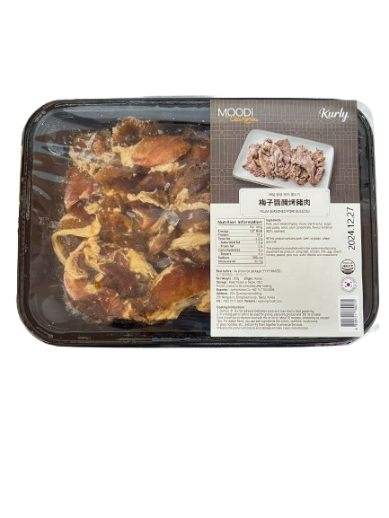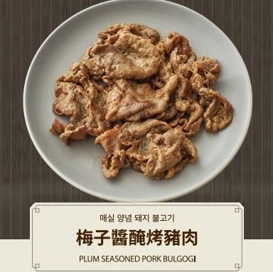 梅子醬醃烤豬肉採用了國產的豬肉後腿肉切成薄片、肉質彈性大足。加入未稀釋的梅汁醃制,甜中帶鹹,讓人食欲大開。