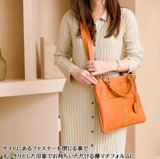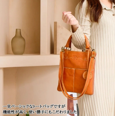 天然风貌的皮革,一眼就能看出是真皮,其质朴的气息和皮革本身的色彩深浅变化,随着使用时间的增加,变得更加有味道,并且会逐渐与消费者融为一体,成为令人喜爱的原创包包。 柔软且富有表情的真牛彼特有的老化变化也是一大特色。除了钱包、小钱夹、手账等小物件外,还可以收纳B5尺寸的物品和500ml的水瓶。 此外,还可以通过使用可拆卸的肩带作为斜挎包使用。 基础设计适合从工作到私人用途的各种场合。