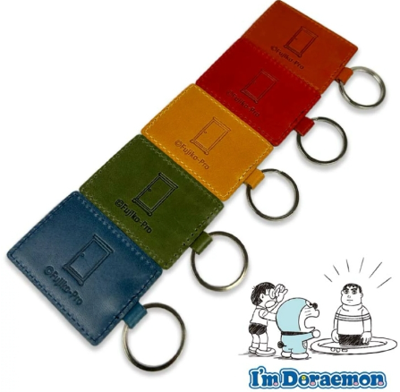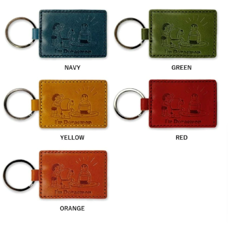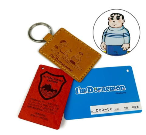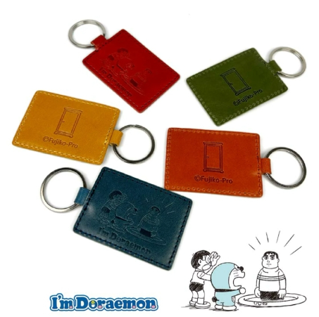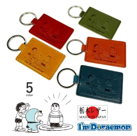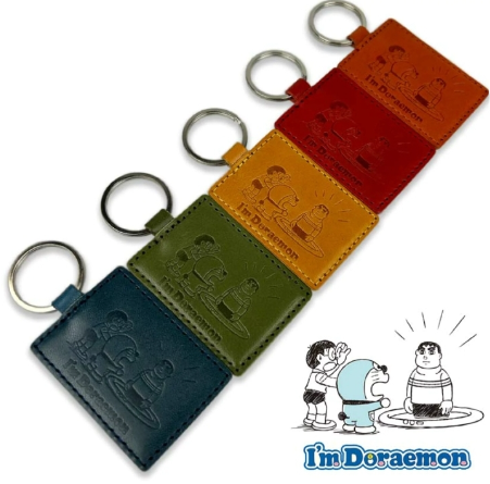 以哆啦A夢為主題的栃木皮革雙面壓花鑰匙扣。