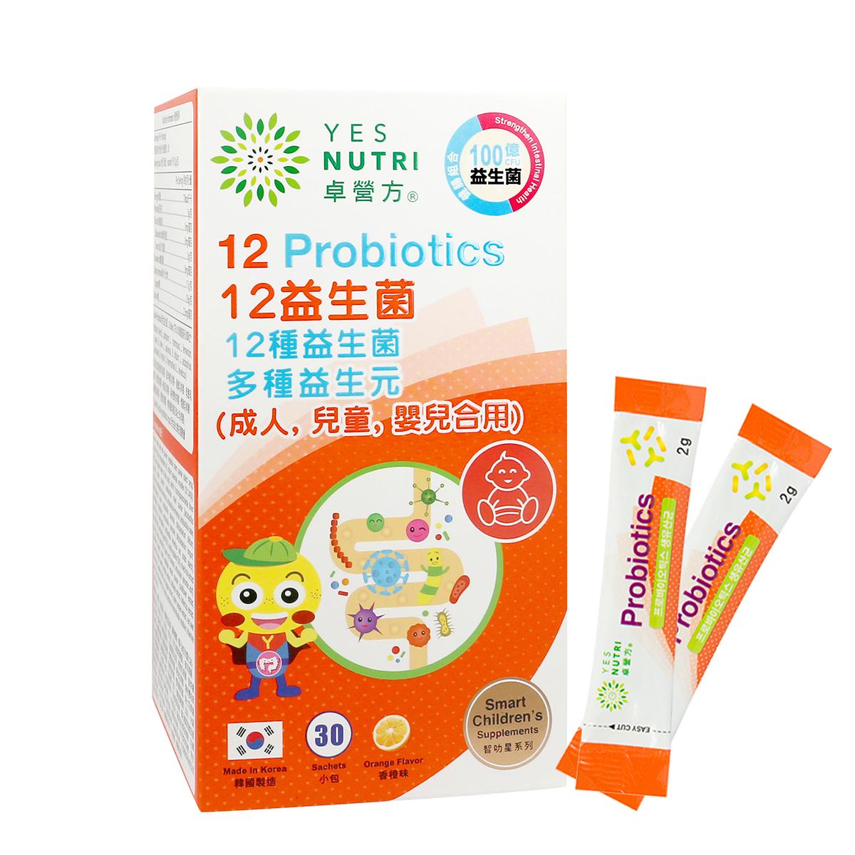 卓營方12益生菌由12種不同益生菌組成,富含多種雙歧桿菌及乳桿菌種類,能夠增加腸道益生菌同時抑制有害菌生長,有助於恢復胃腸道中健康的菌群平衡,從而保持兒童的天然免疫防禦能力。 它還有利於兒童的排便並防止便秘。
