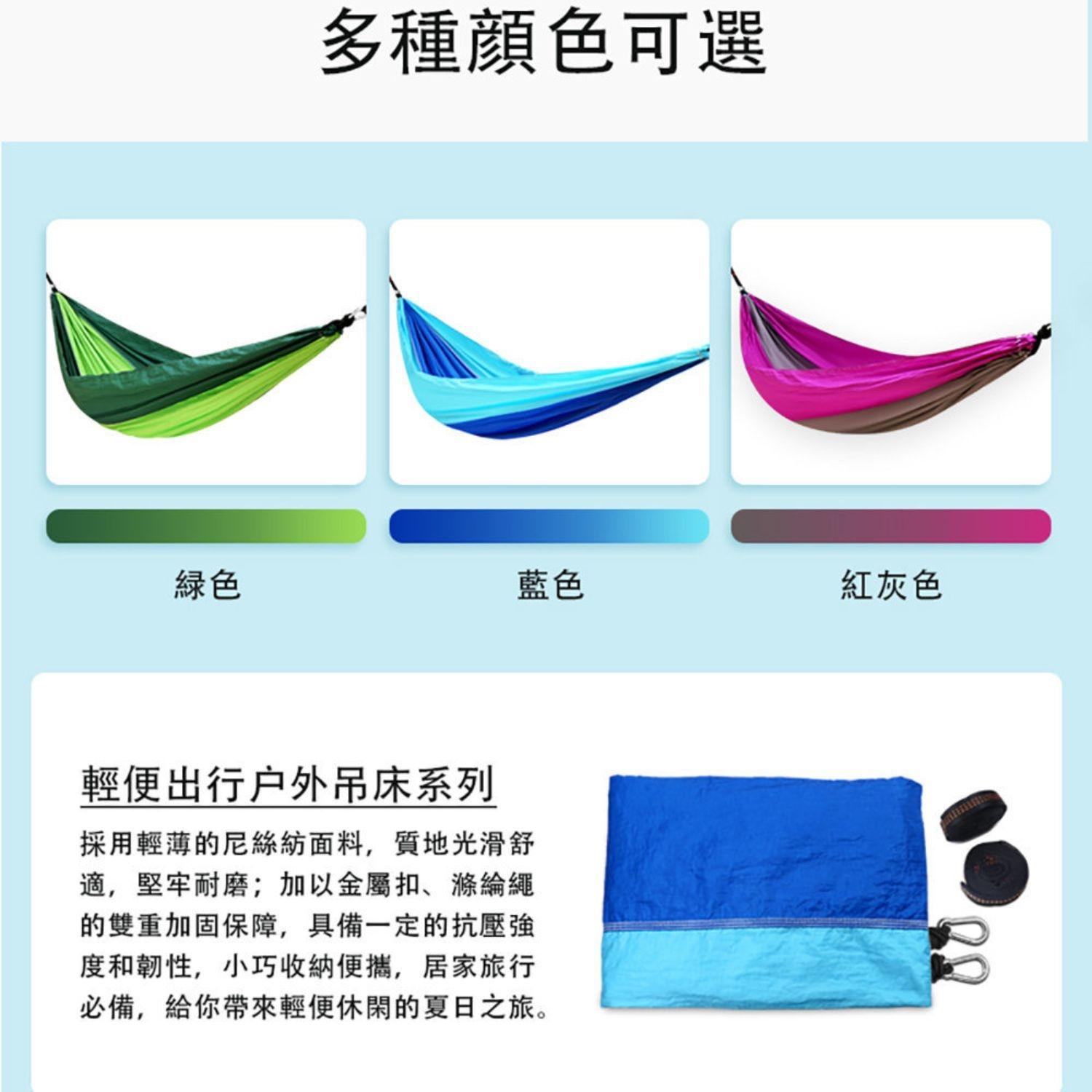 *收納輕便,方便攜帶。纖薄透氣的面料,具有強悍承重,抗撕裂,防側翻設計,連體收納成袋,採用加粗加寬吊牀綁帶,具有保護樹皮不易損傷作用,安全,環保。比市面上一般吊牀更寬更大,多用途性價高,可當吊牀,鞦韆,地墊。是實用,實惠的最佳選擇。