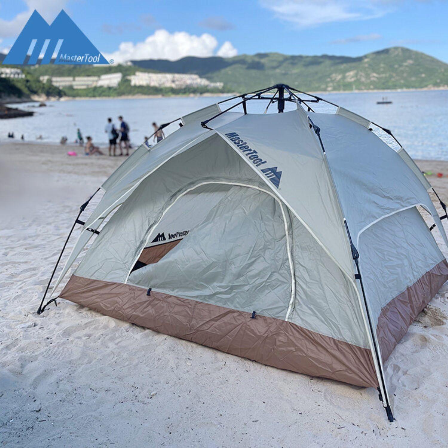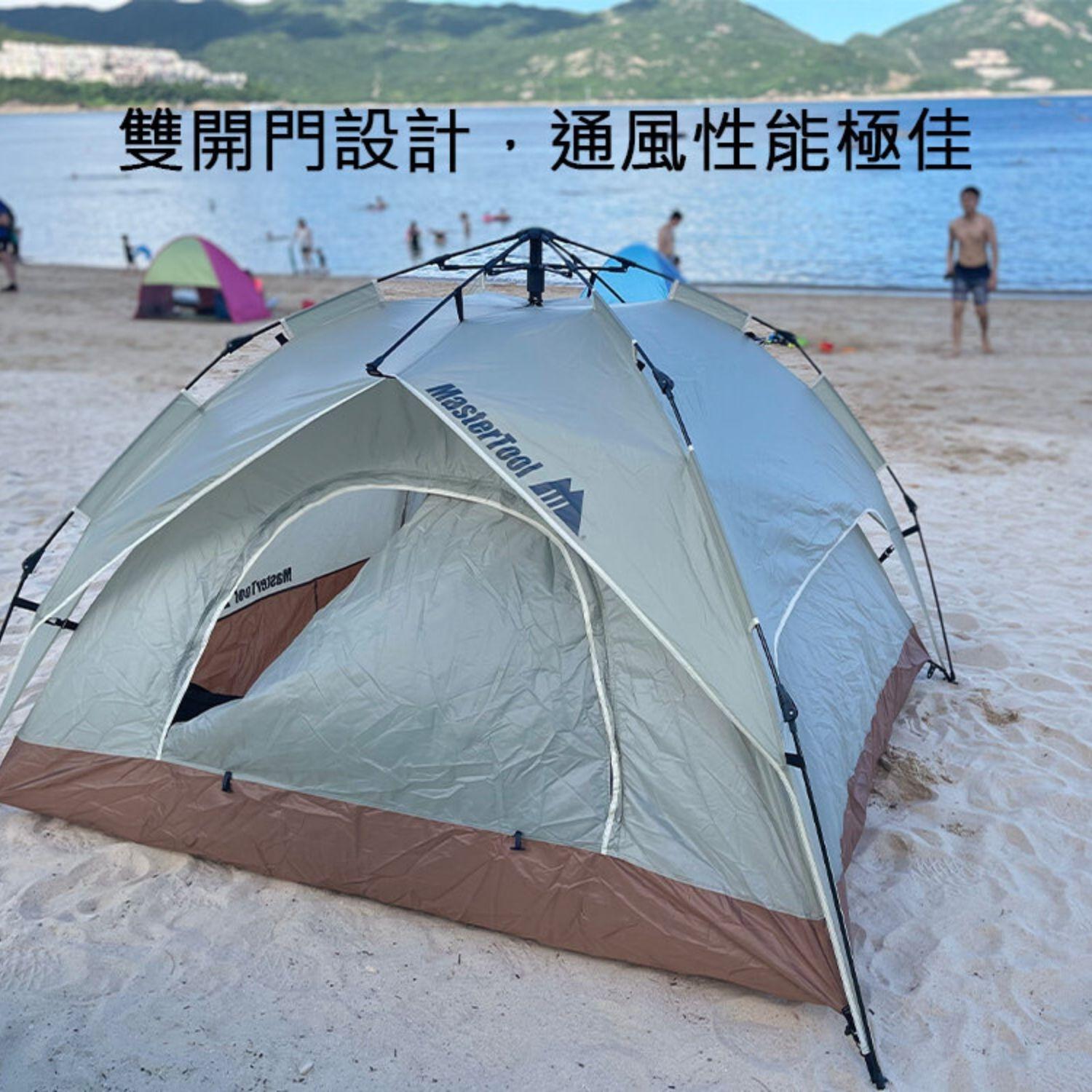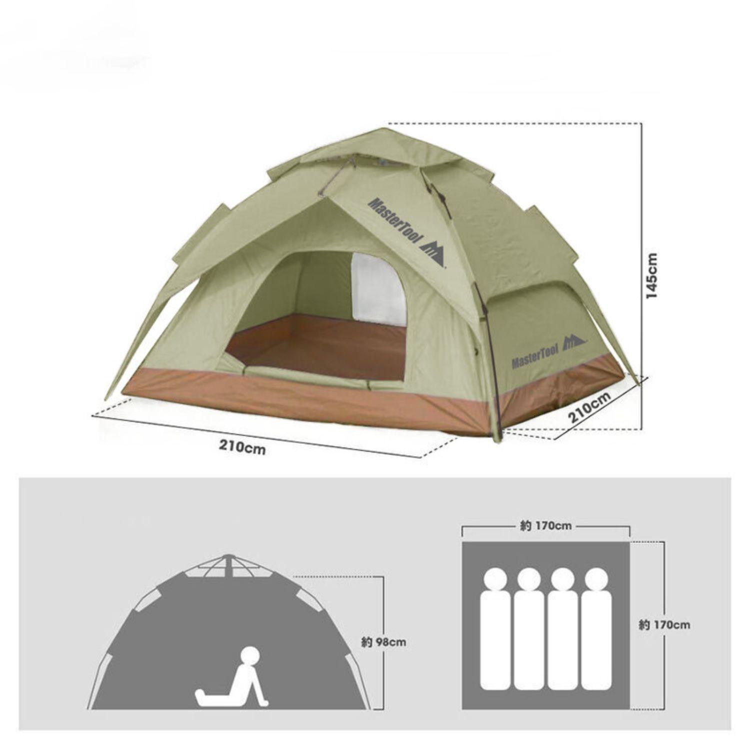 MasterTool 3合1雙層防水家庭自動帳篷可容納3-4人(可攜式可折疊野營加厚自動彈出式,防風防雨)