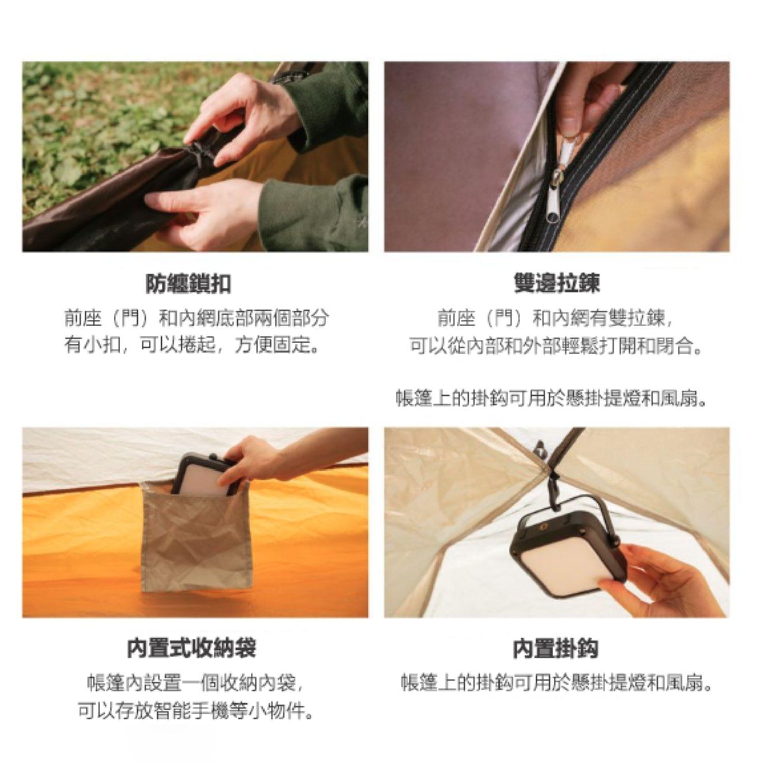 • 容量:大號 • 尺寸:220厘米*200厘米*145厘米 • 適合3-4人 • D型門設計,透氣,適合家庭和情侶