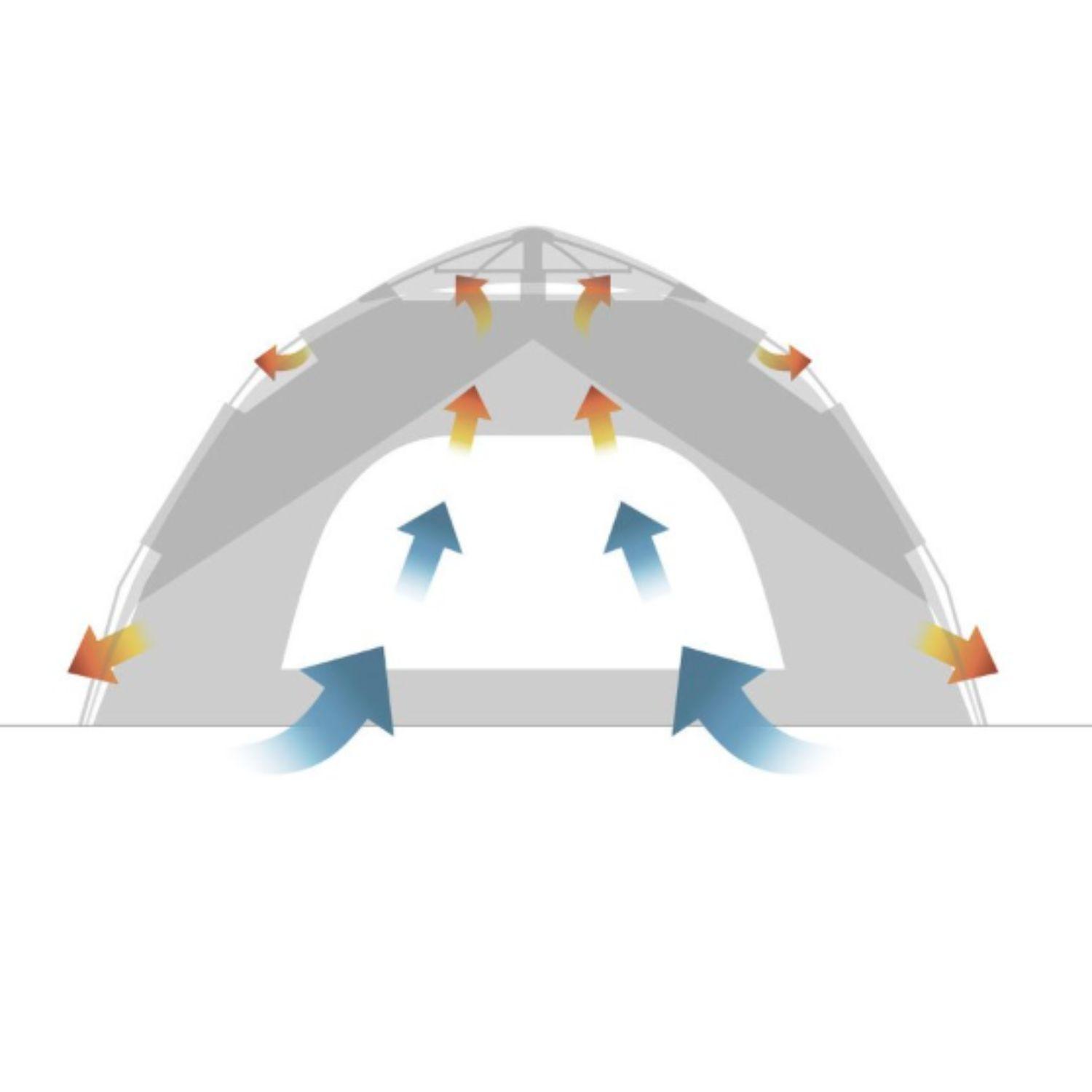 *獨特的雙門設計,每扇門都有雙層,由網眼和防水聚酯製成。通風的網狀門可以讓寒冷的微風進來並將蟲子拒之門外。內帳頂部網眼罩讓您在帳篷關閉時欣賞星空的美景。 孩子們可以在露營帳篷內小睡,大人則可以在戶外享受時光。