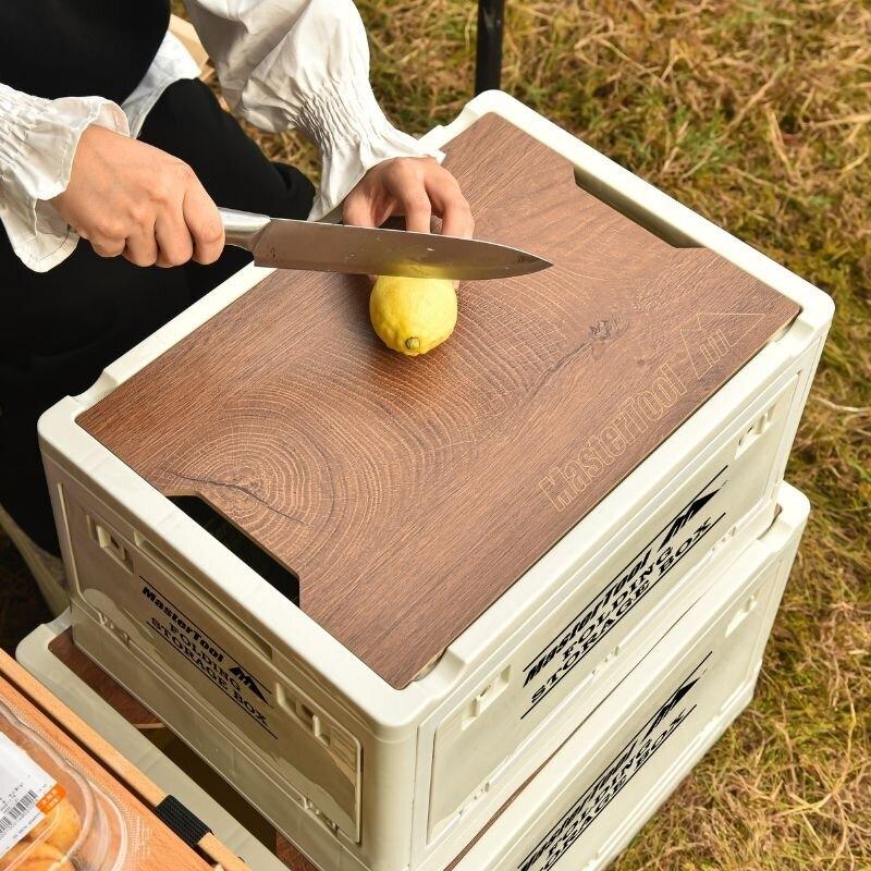一箱兩蓋,木紋蓋板可充當砧板使用,透明收納蓋可以作為家居儲物箱的蓋子使用