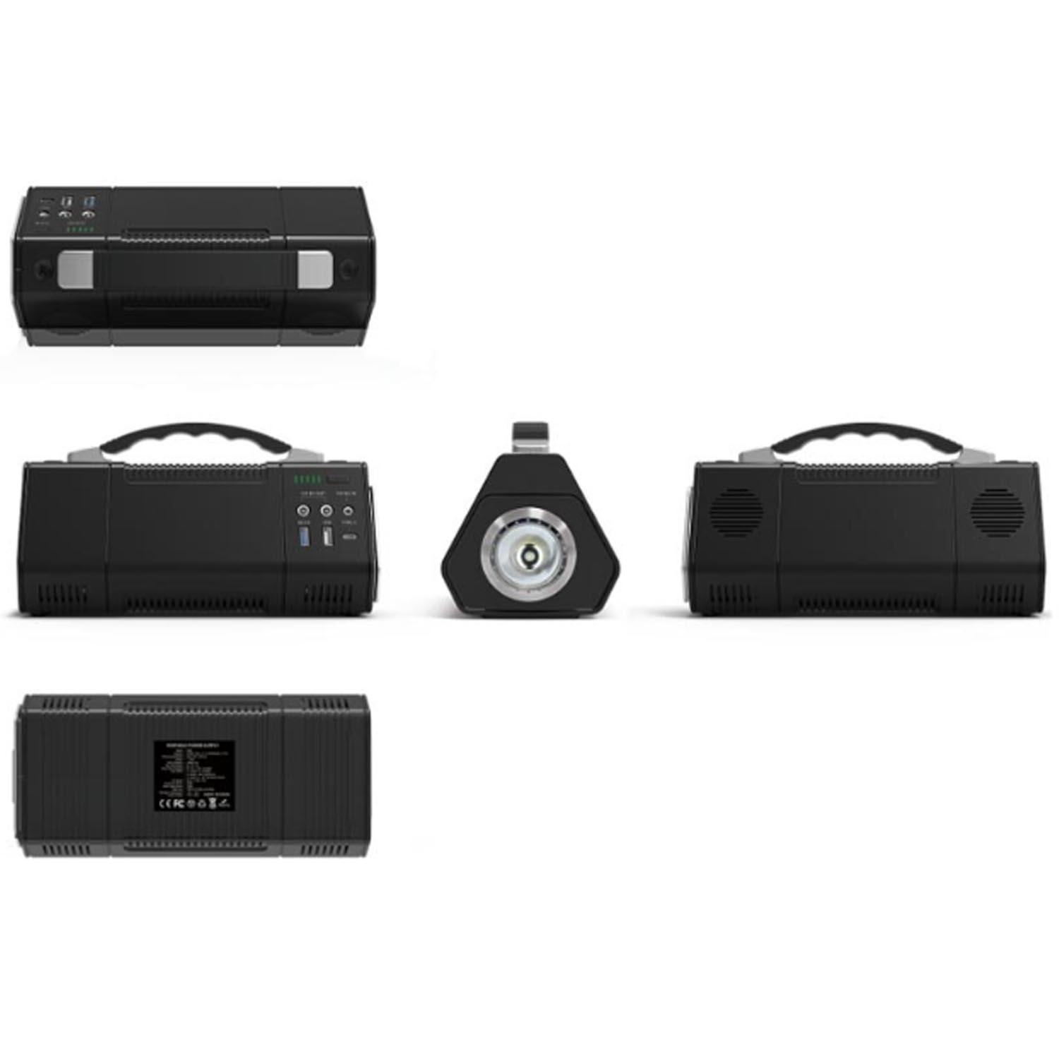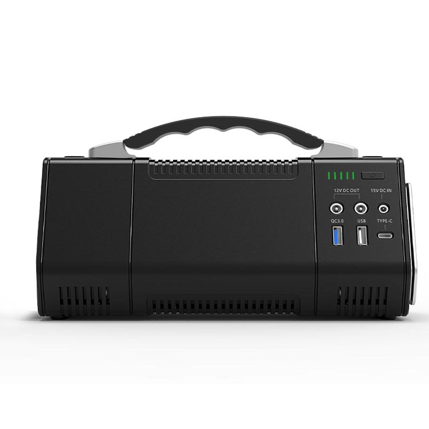 • 詳細介紹 • 技術規格 • 電池類型:鋰離子 • 容量:155Wh(相當於42,000mAh/3.7V)• 尺寸(長*寬*高):260 X 118 X 125 毫米 • 重量:約1.64kg • 輸入充電:DC 15V / 2A • 太陽能電池板充電:DC 13V ∽ 22V / 2A (Max) • USB 輸出: 1 x USB 5V / 2.1A(最大)• : 1 x USB 5 ∽ 9V / 2A (QC3.0) • : 1 x Type-C 5 ∽ 9V / 2A (QC3.0, pd2.0) • 直流輸出:DC 9 ∽ 12.5V / 10A •持續功率:100W • 峰值輸出功率:150W • 輸出電壓:220V / 50Hz • 安全保護:過充/過放/過壓/過流/過功率/短路/過熱