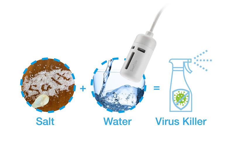 以天然材料自家製作強效而無毒的消毒液,自然環保。只需在一瓶水中加入少量鹽,SmartGo消毒液製造器便可在短時間內以電解原理製造次氯酸鈉消毒液,旅行及家居殺菌消毒的神器。 優點: 以鹽和水製造,沒有任何添加劑或有害化學物質,成份天然 強而有效殺滅細菌病毒,但對人體無害而且安全 適用於家居、旅行清潔及消毒,或用於洗滌水果,蔬菜和餐具(必須用水徹底沖洗) 無須額外費用,可按需要隨時輕鬆製作,即使在旅途上 規格: 將鹽水以電解原理製成次氯酸鈉消毒液 USB供電,主機不帶電池,旅行更方便 小巧輕便,可隨身攜帶 尺寸:45 x 22 x 22mm,重量:45g 套裝包括:消毒劑製造器、噴霧瓶、匙、漏斗、使用說明書 保養服務: 獎勵備有1年香港的保養服務。請電郵至cs@everlong.biz聯絡Everlong Marketing Limited,查詢產品保養詳情及維修事宜。