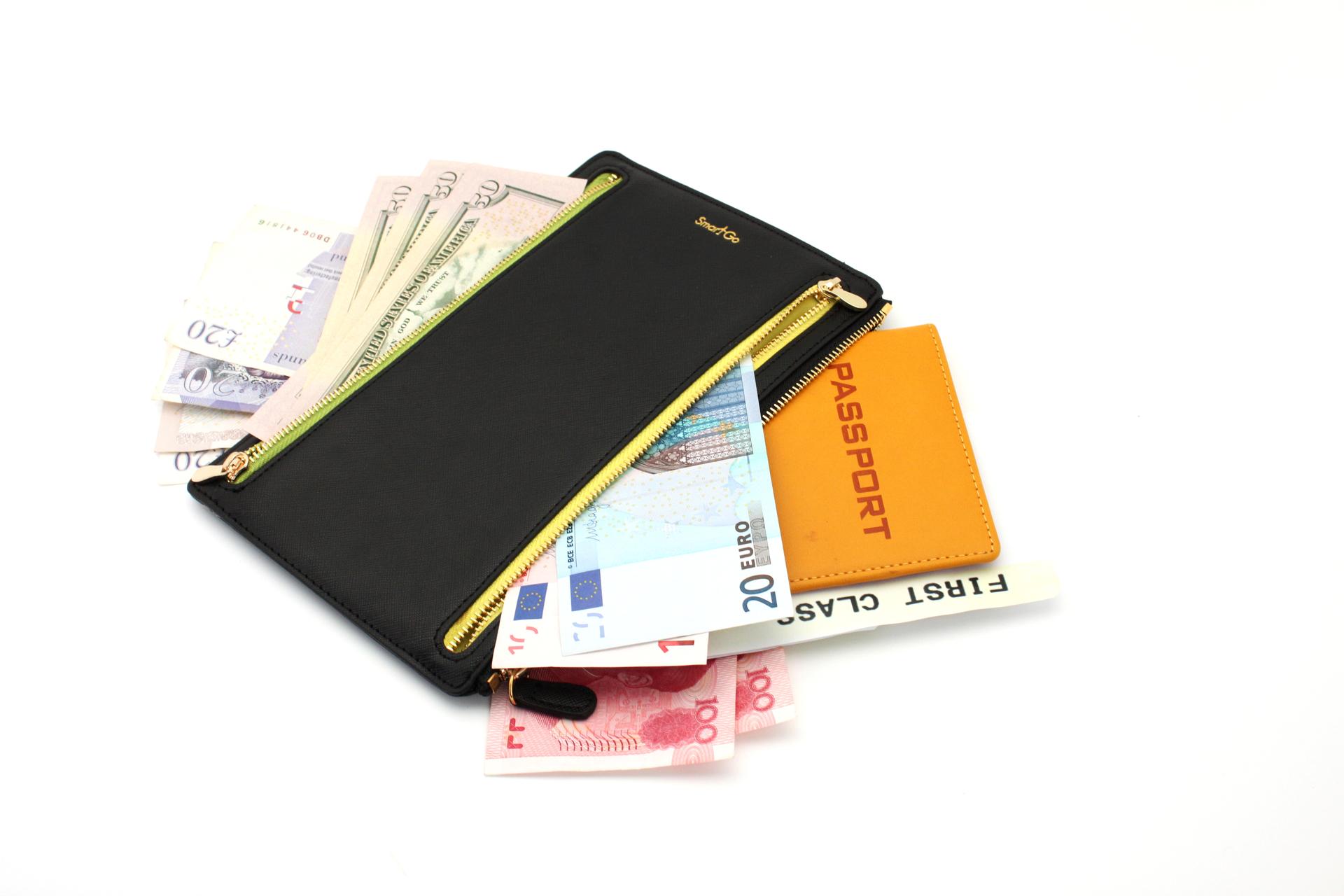 時尚旅遊必備!手工製作的多幣種收納包,陪伴您每一個窩心的旅程。 設計簡約,輕巧便攜,不同顏色的拉鍊便於區分隔層,適合收納不同類型的票據和貨幣,是旅遊愛好者及商務人仕的實用配備。 優雅的金色拉鏈 五種不同顏色襯裡 五個配色的拉鏈口袋 產品尺寸:145(寬) x 220(長) x 2(厚)毫米