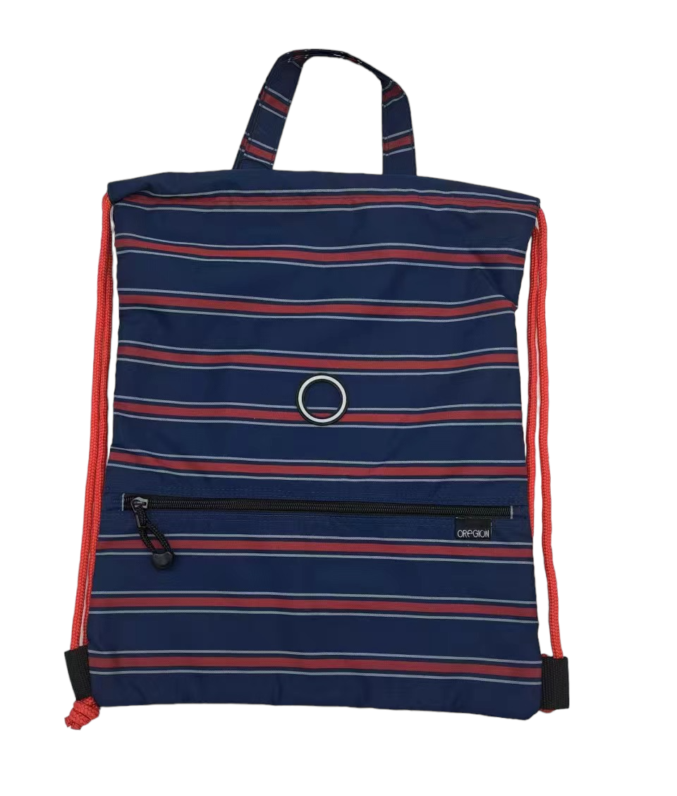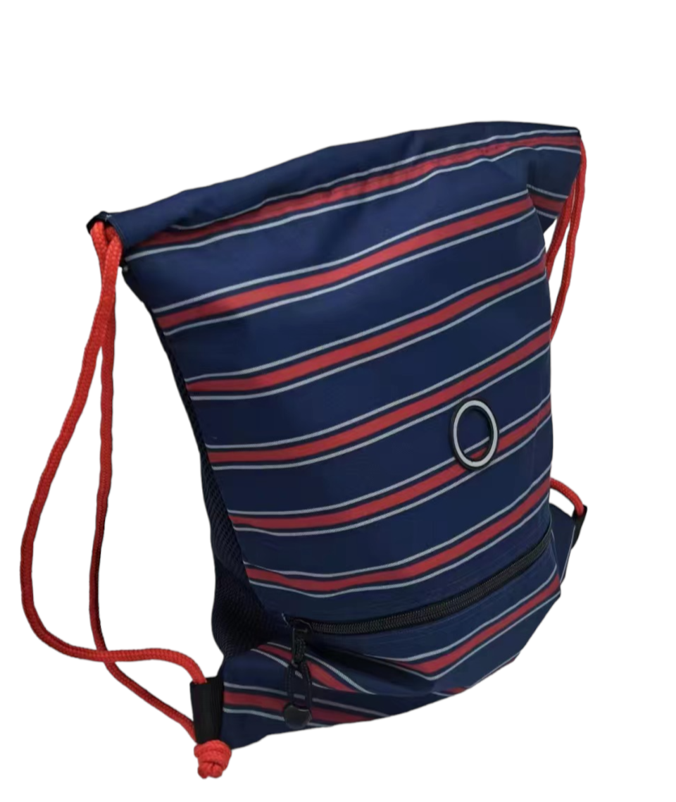 索口袋,亦稱索繩袋,優質POLY物料,袋面採用人手沙織間色設計,比其他打印設計更為耐用。前有一個細袋,可放少件物件,頑固拉鍊,不怕輕易損毀,柔軟優質紅色POLY尼龍索帶,可選擇手拿或身背。袋背用了優勢的三文治網,可通風,使使用者倍感涼快。袋有吊袋,可放電話大小,附有拉鍊,方便存放物品。