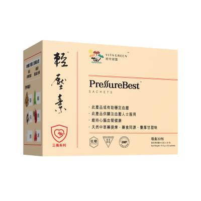 主要成分: 葛根、平菇、杭菊、桑葉、玫瑰花、山楂 港人血管指數爆錶 每四人就有一人有問題 據衞生署的調查,本港每四人有一人有高血管指數問題,而且很多港人擁高血管指數卻不自知,隨時爆心血管危機亦措手不及,而且問題出現年輕化的趨勢,情況令人擔心。 何謂高血管指數? 在一天裡,血管指數每分鐘都會隨著不同的因素而變化,包括身體姿勢、情緒及睡眠等。但以成年人來說,若上指數持續處於140或以上,或下指數持續處於90或以上, 便屬高血管指數。若上指數處於120至139之間,或下指數處於80至89之間,則屬於前期高血管指數,應多加注意! 高血管指數 成因 由於都市人的飲食及生活習慣差,血管中的垃圾也堆積得越來越多,血流能力變差,同時隨着年齡增加,血管開始慢慢失去彈性,增加血流阻力,形成高血管指數。 除此之外,很多人誤解高血管指數只是心血管問題,但其實情緒對血管健康有深遠的影響。高壓人士因體內分泌過多壓力賀爾蒙和腎上腺素,使血管指數持續高企。 另一方面,如情緒過於激動或完成劇烈運動,都有可能使血管指數突然升高,引爆心腦血管危機,所以情緒健康與高血管指數問題息息相關。 中西醫專家研製 360天然輕壓配方 輕壓素由多種中草藥360o 針對高血管指數問題研製 - 桑葉、平菇、葛根增血管彈性 桑葉、平菇能有助擴張血管、增強血管彈性;而平菇中富含豐富的營養素,研究表明有助軟化血管、促進心肌功能;葛根在中國已被廣泛用於治療心腦血管疾病,有助擴張血管、減低血管緊張度、增強血管彈性 - 葛根、山楂清除血垃圾 研究證實葛根還可降低血管阻力、改善血流,有效預防心血管問題; 山楂具有明顯清除血垃圾的功效,山楂更可以改善血液流動,保護心肌不受損害等作用 - 玫瑰、杭菊降激動情緒 玫瑰行氣解鬱,有助緩和情緒; 而杭菊疏風散熱,清心、明目平肝解毒,舒緩情緒。 適合人士: 高血管指數人士及高危一族可服用以避免中招 - 高危一族: -家族因素: 家族中有直系親屬患有高血管指數都屬於高危一族 -吸煙人士:吸煙飲酒人士會增加心血管問題的風險 -飲食習慣差:高鹽、高脂肪、高熱量飲食都會導致高血管指數 -缺乏運動:定期的帶氧運動,對維持心血管健康有正面的幫助 -肥胖:令三高風險增加 用量: 日常保健:口服,每日一包 舒緩不適:口服,每日兩包 建議將粉末加入180ml溫水,混合後直接飲用。建議於餐前飲用。