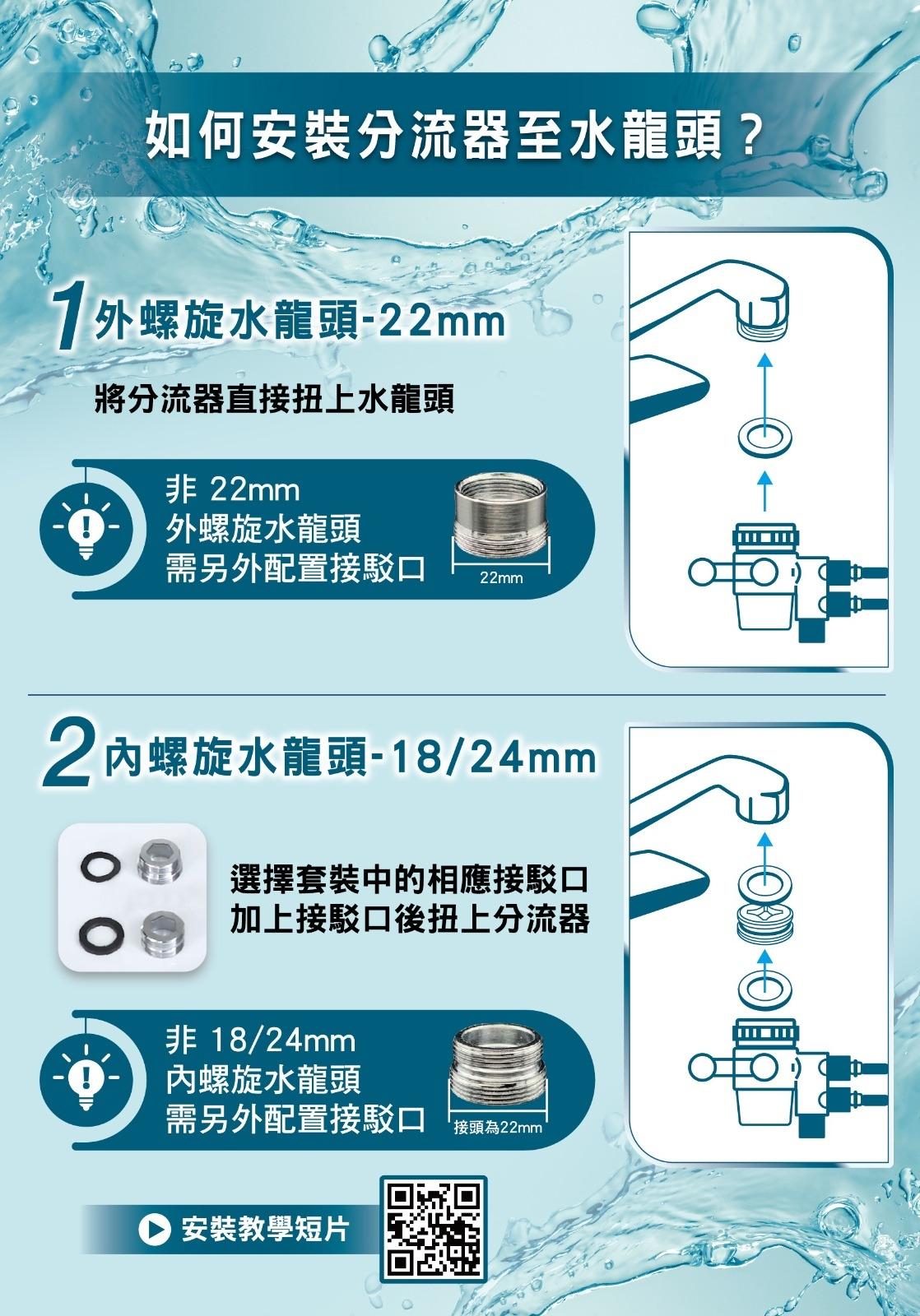 CF1 家用濾水器可自行安裝,簡單方便。濾頭設計可貼於牆身 / 掛於架上,節省枱面的位置