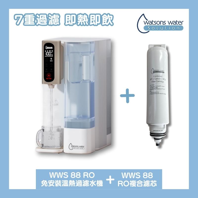 屈臣氏 WWS 88 RO免安裝溫熱過濾水機+專用PP活性炭棒及RO複合濾芯1個