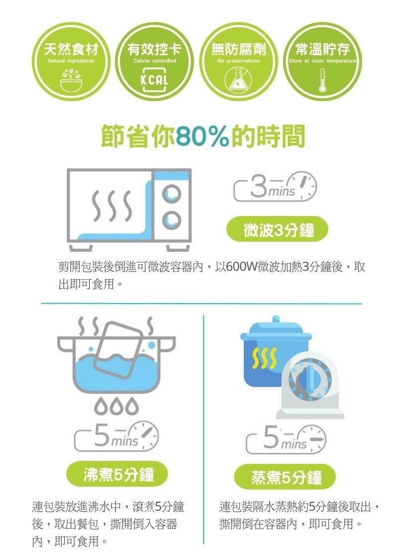 無需冷藏,加熱即食 日式咖喱輔以洋蔥、薯仔、紅蘿蔔等蔬菜,同時滲透微微的辣,低溫浸煮加熱使去皮雞肉肉質嫩滑,簡直是白飯或蒟蒻幼麵的良伴。 一盒食量只有 202kcal 產地:台灣