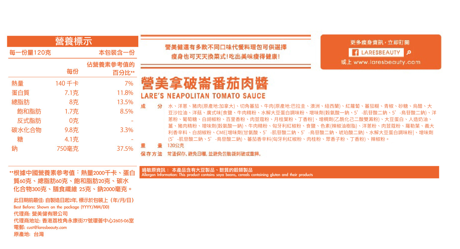 無需冷藏,加熱即食 精選上等牛肉及豬肉,拿破崙醬汁由傳統的蕃茄粒加上香草羅勒,陣陣意大利風情直撲入味蕾,清新茄香吃出愉快心情。 一盒食量只有 140kcal 產地:台灣